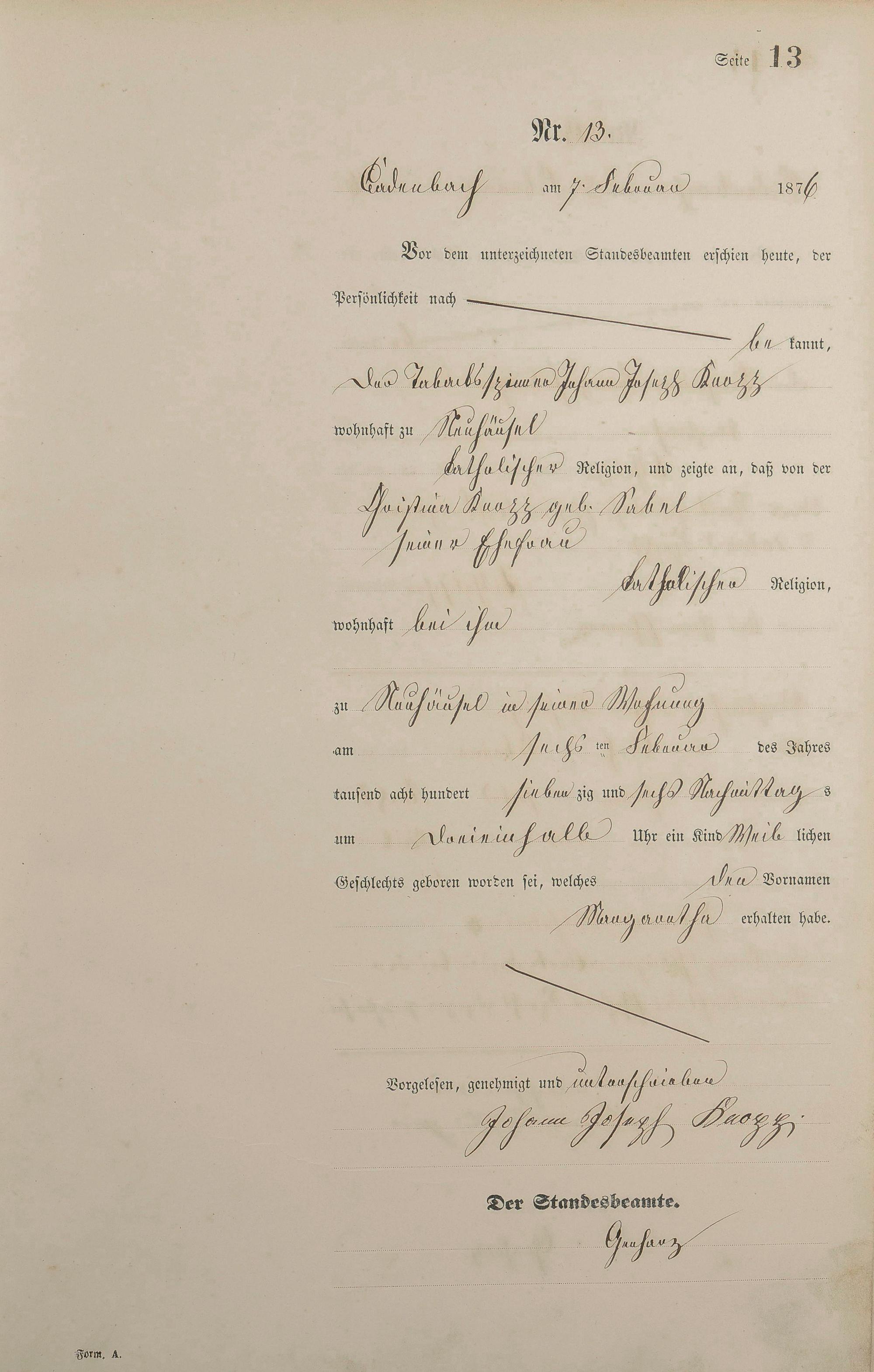 Geburtsregister 1876