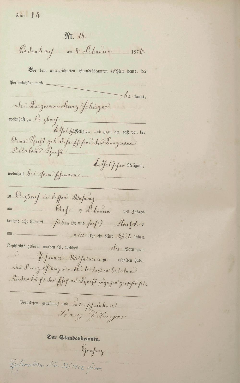 Geburtsregister 1876