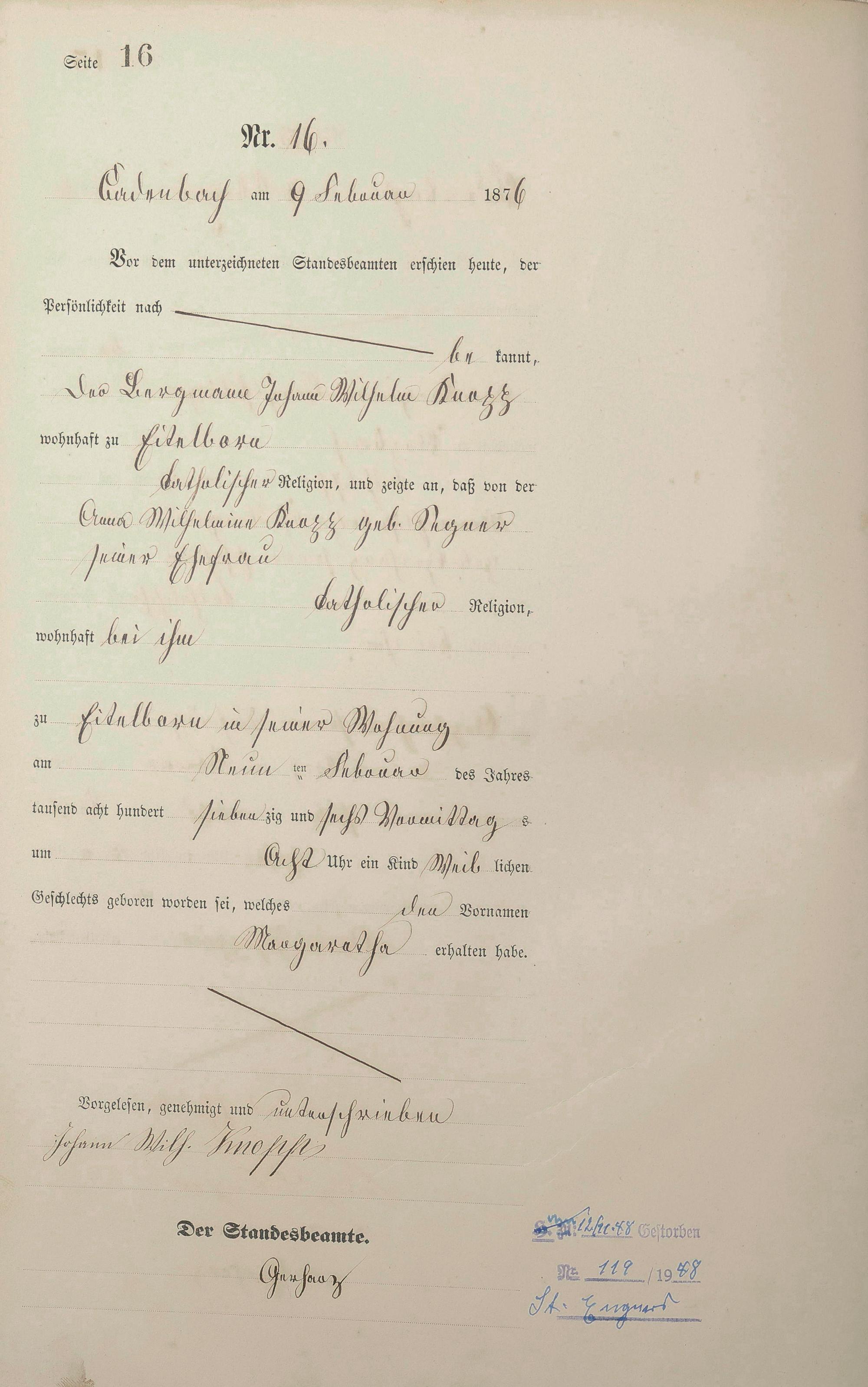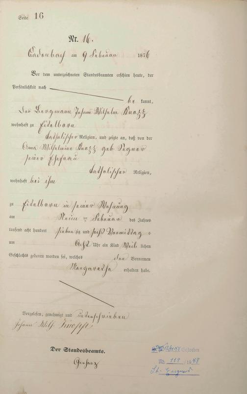 Geburtsregister 1876