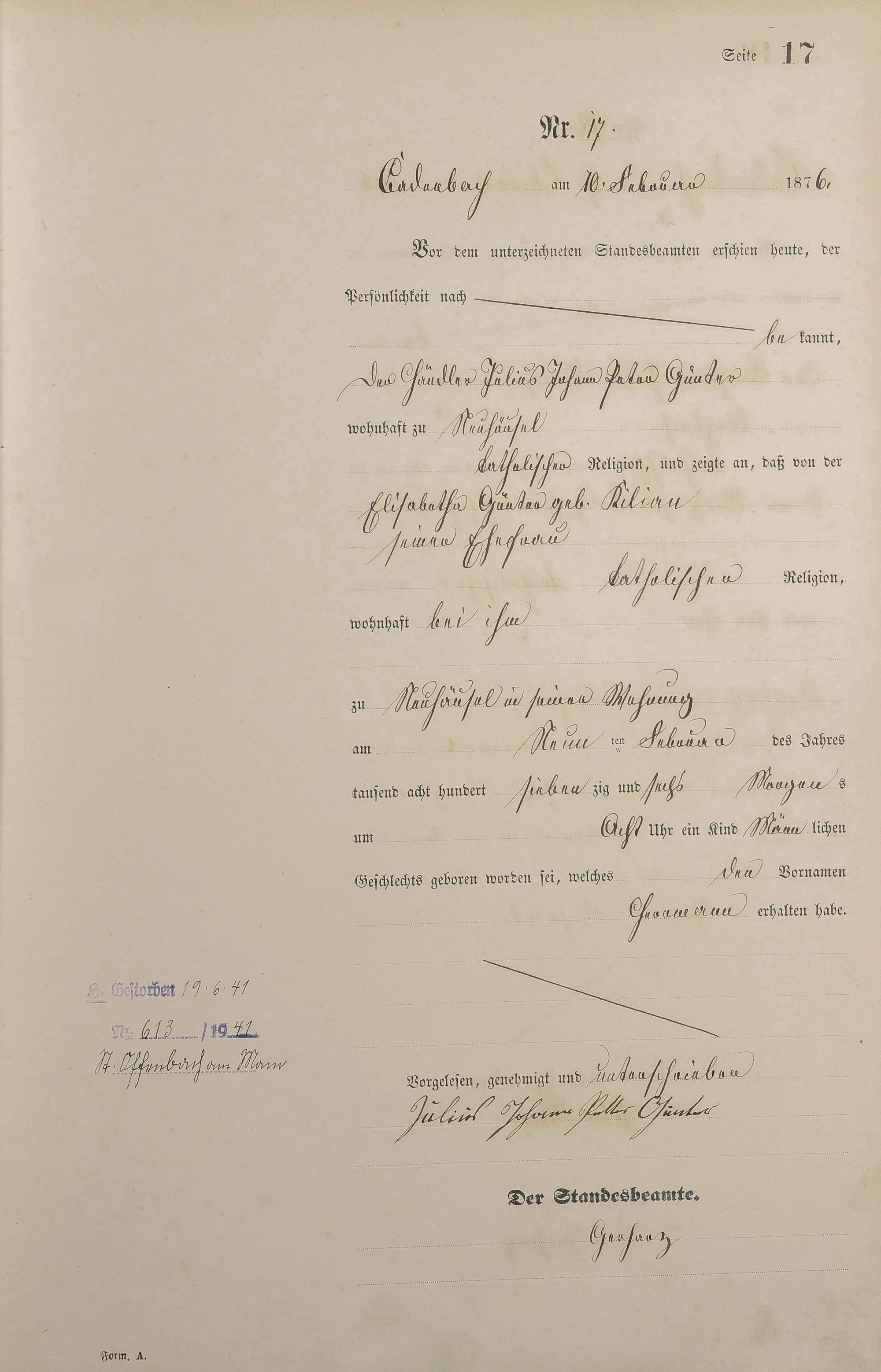 Geburtsregister 1876