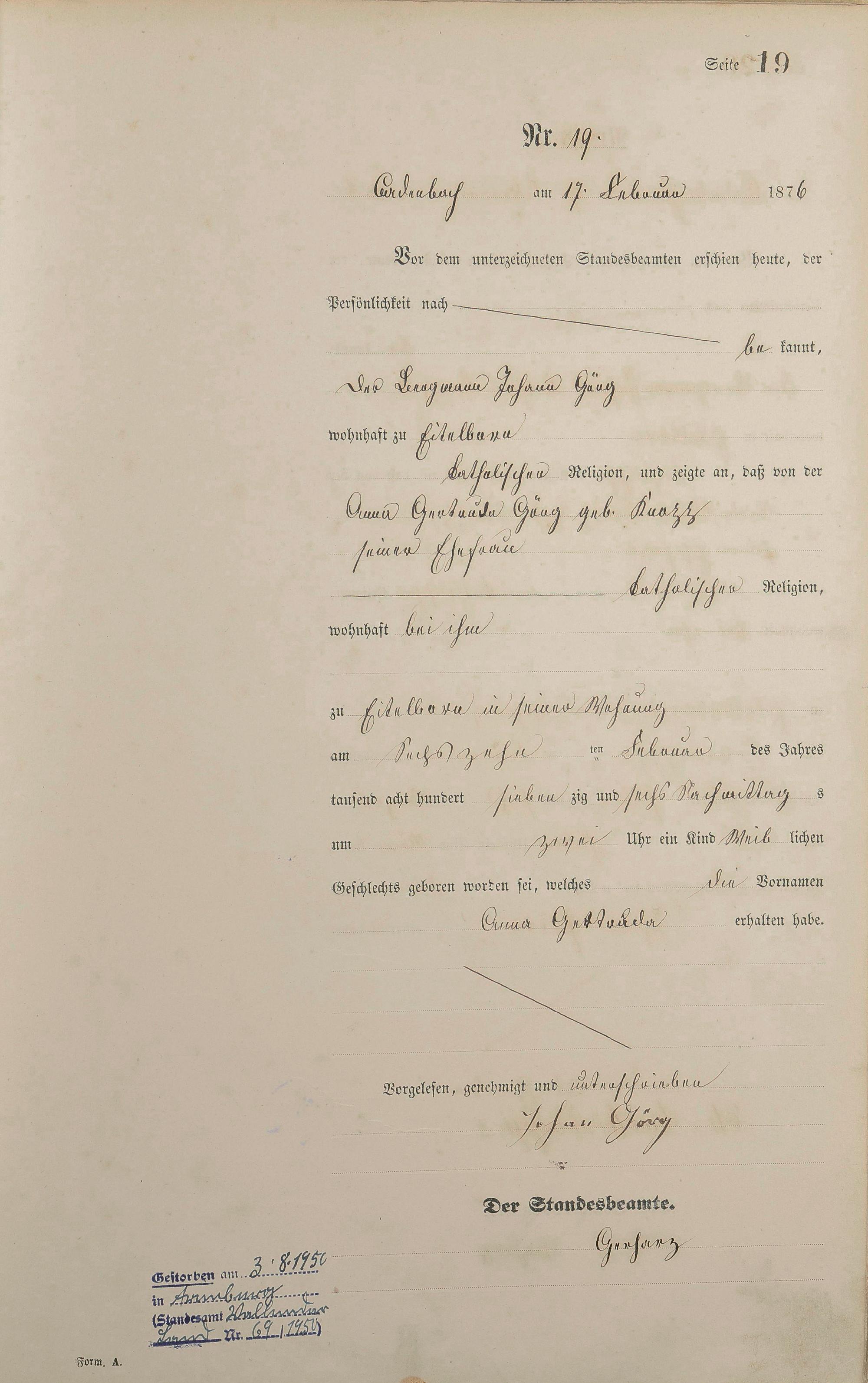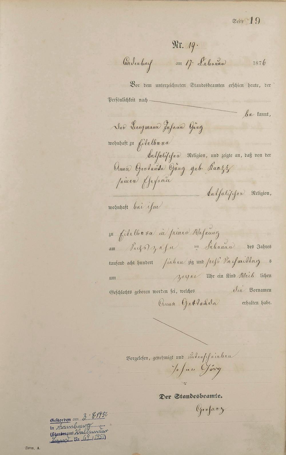 Geburtsregister 1876