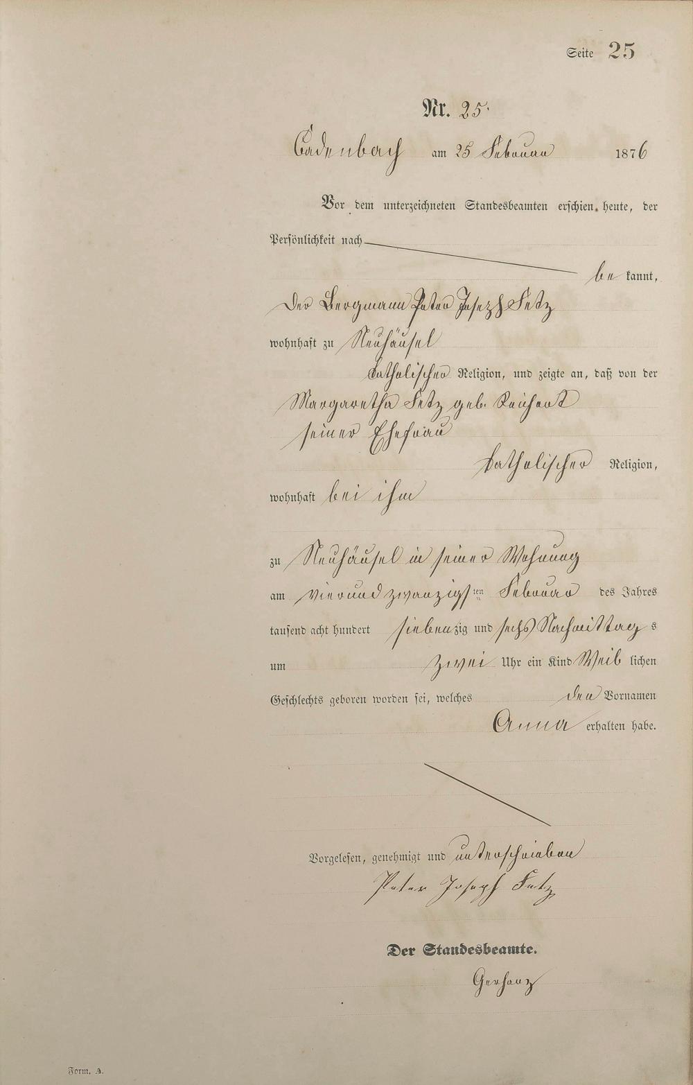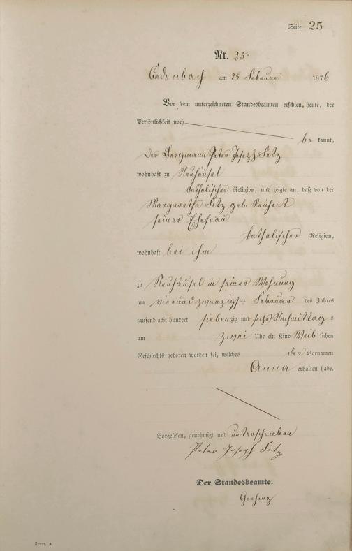 Geburtsregister 1876