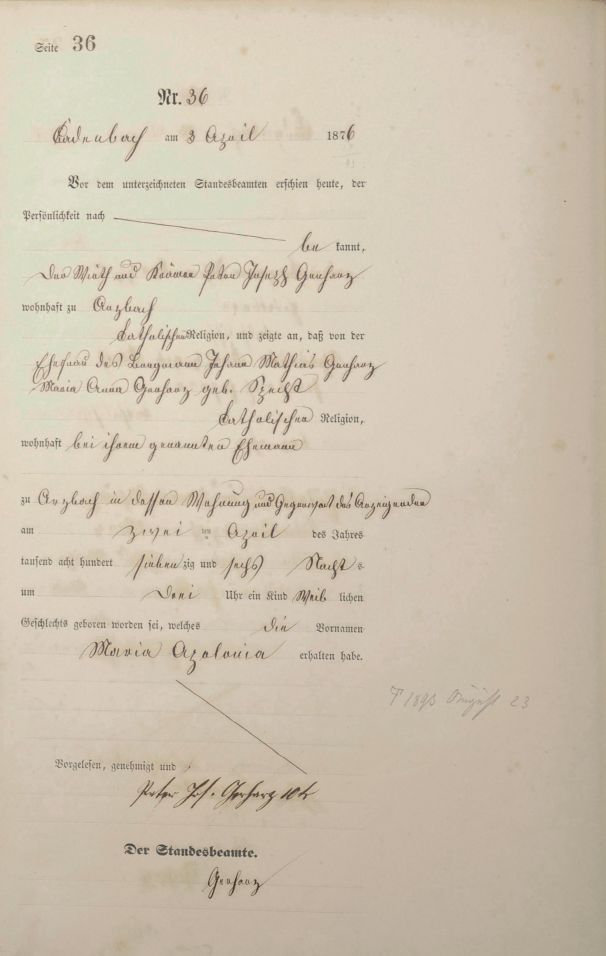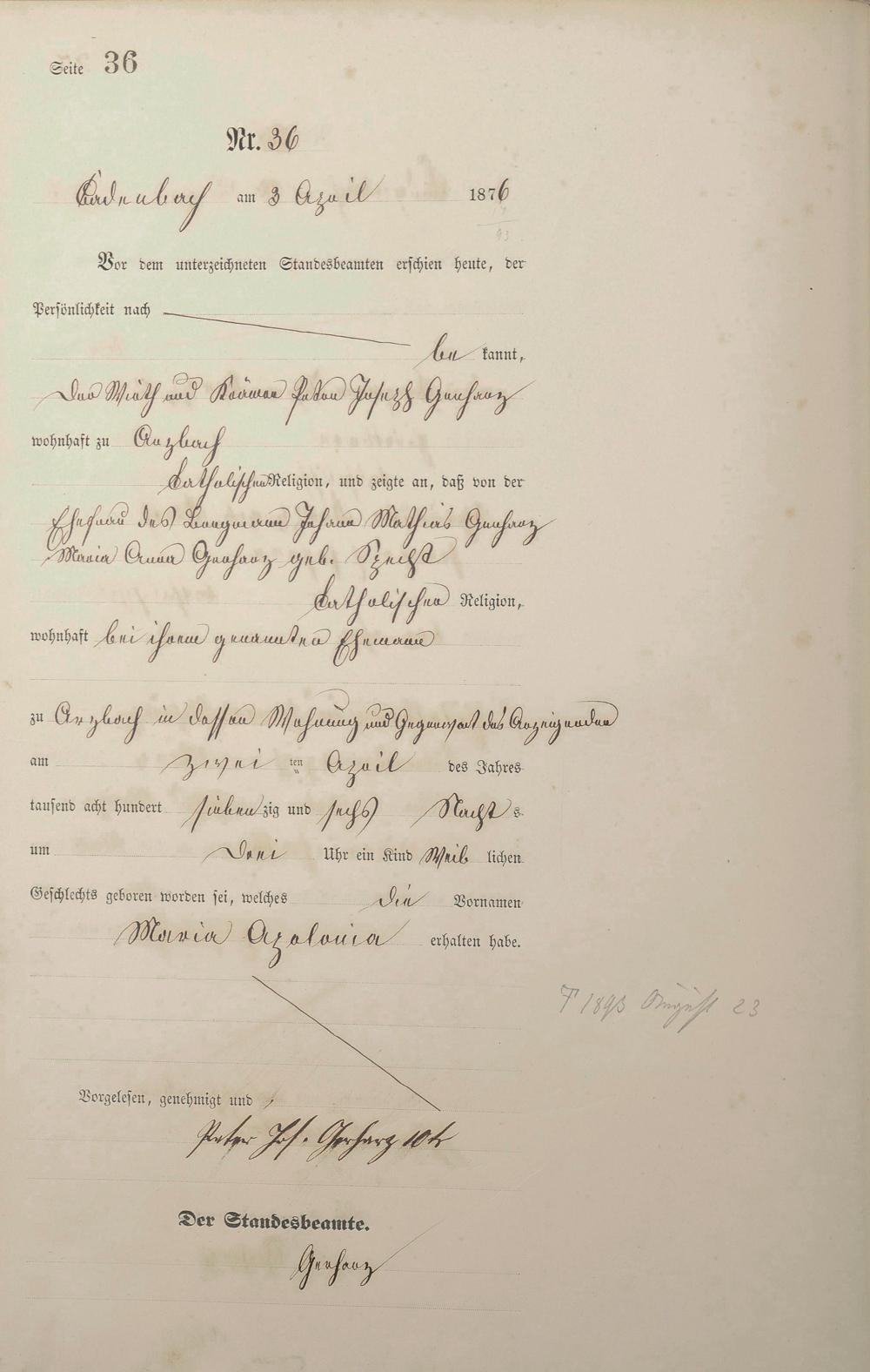 Geburtsregister 1876