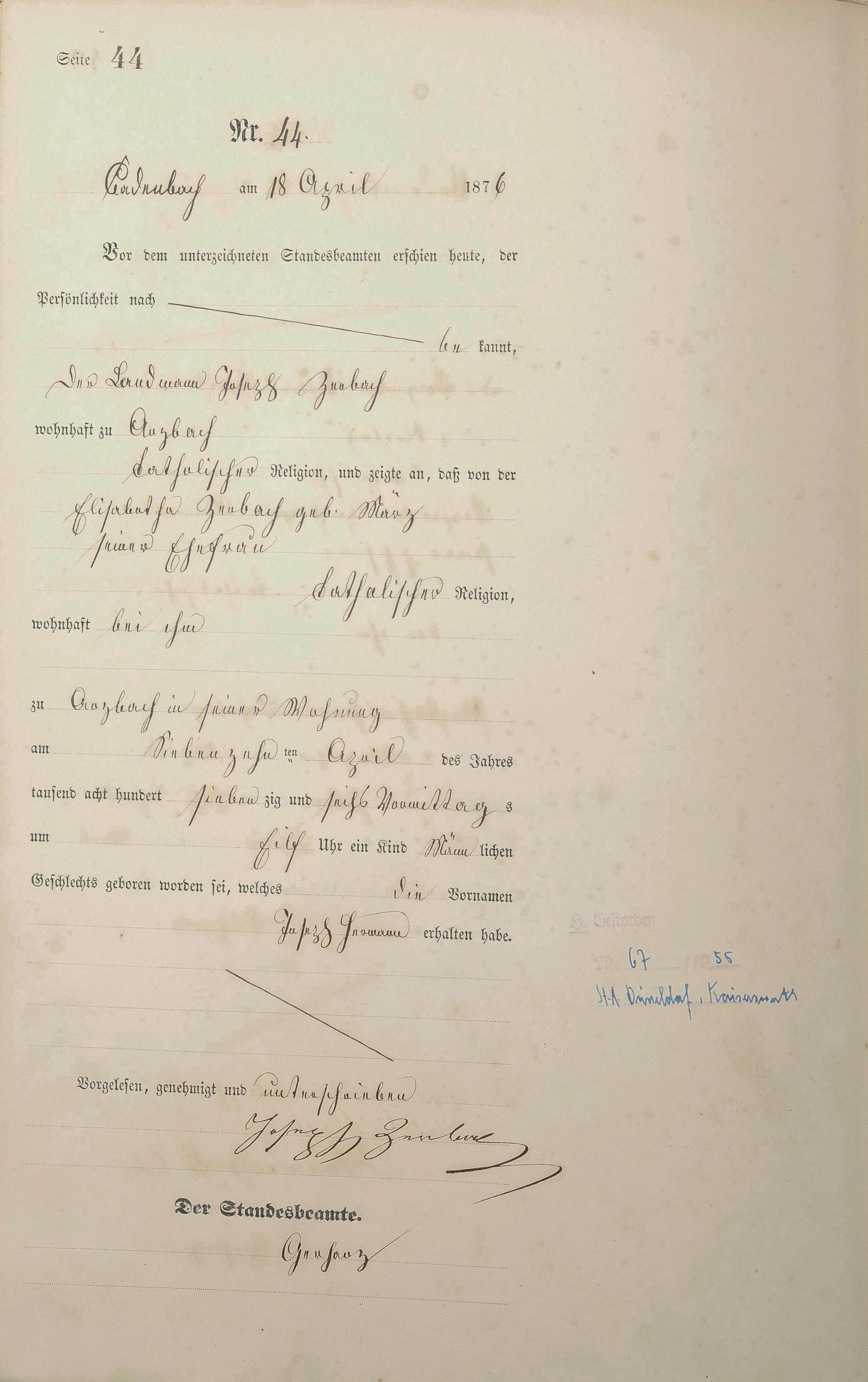Geburtsregister 1876