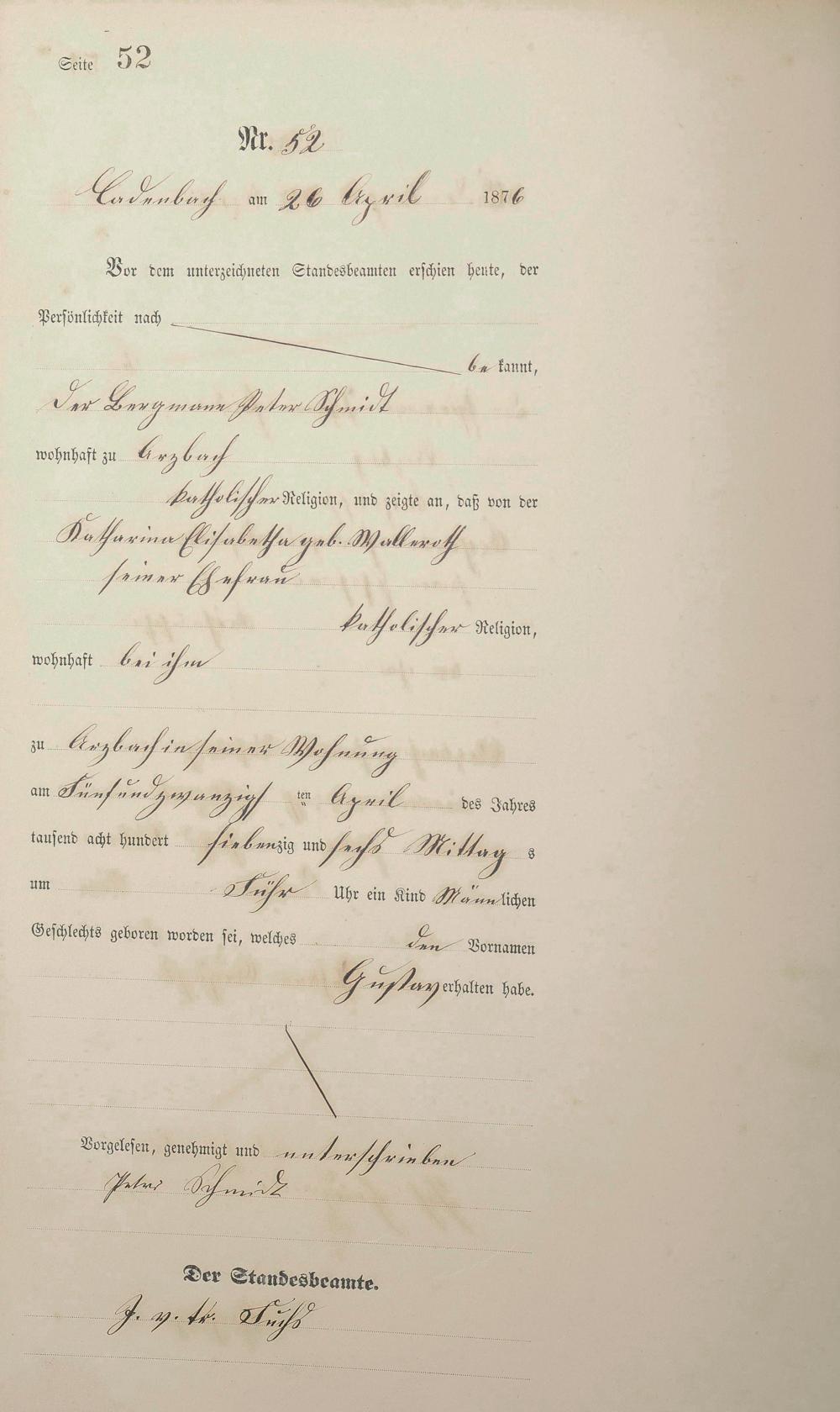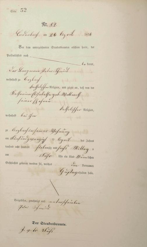 Geburtsregister 1876