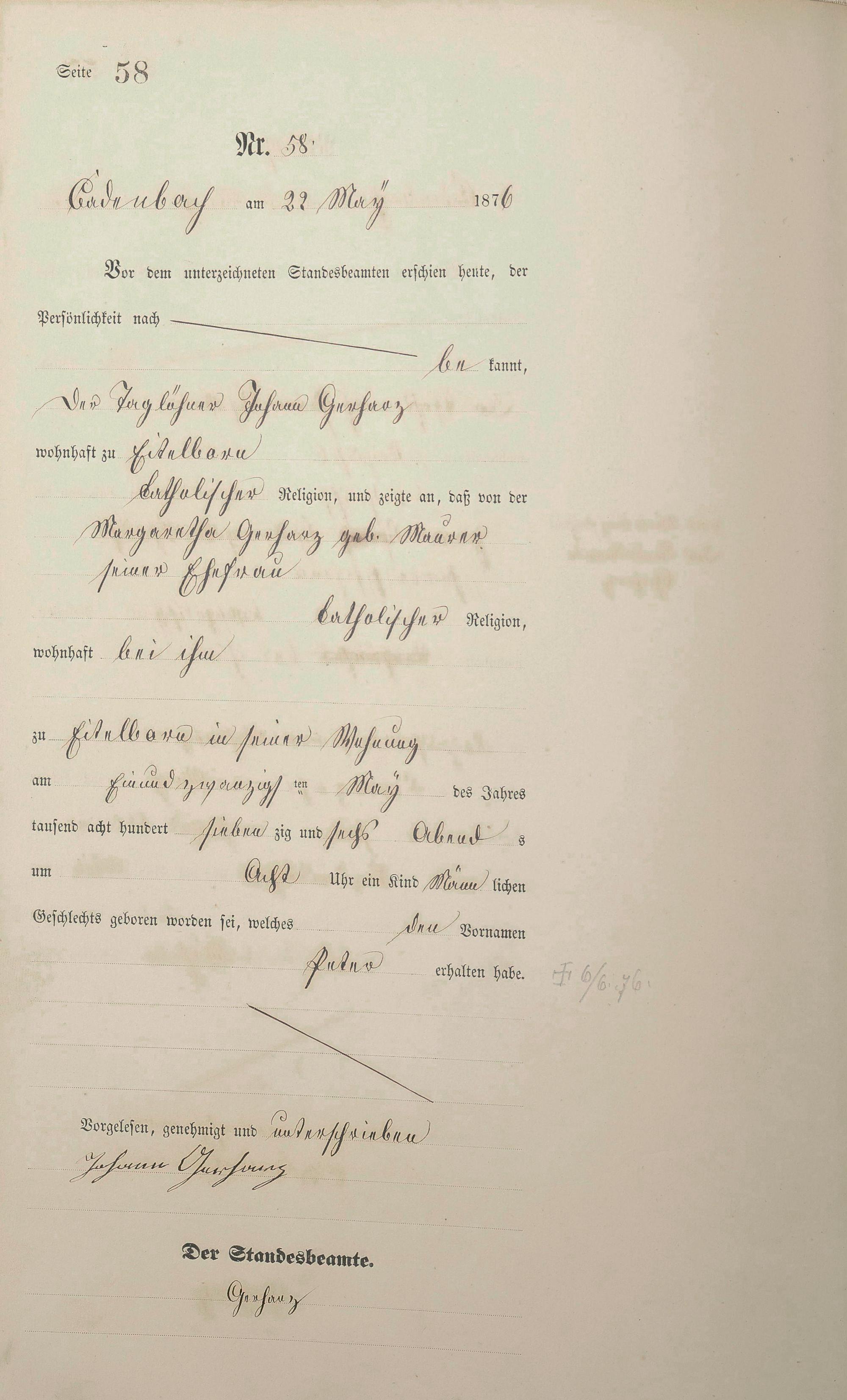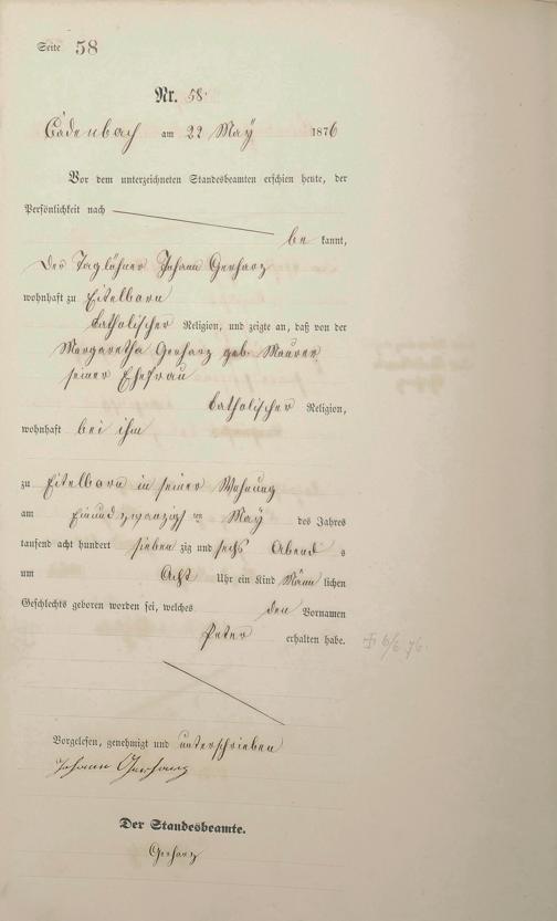 Geburtsregister 1876