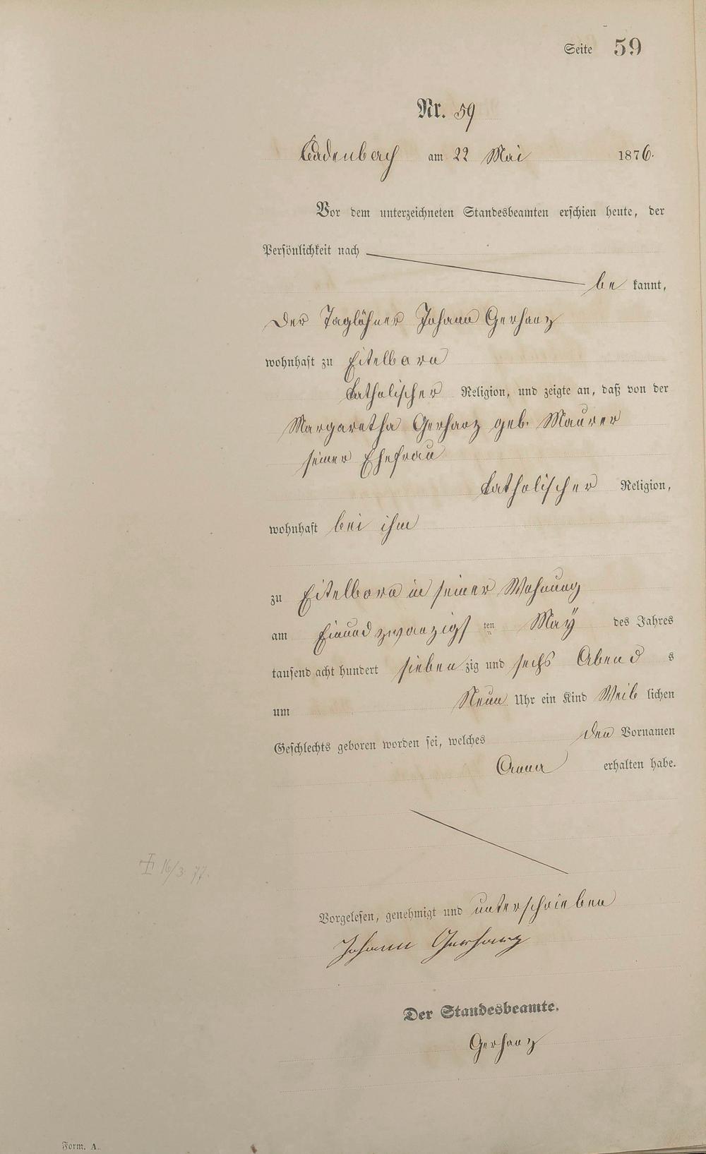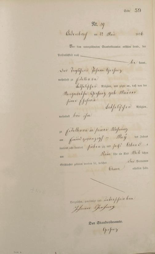 Geburtsregister 1876