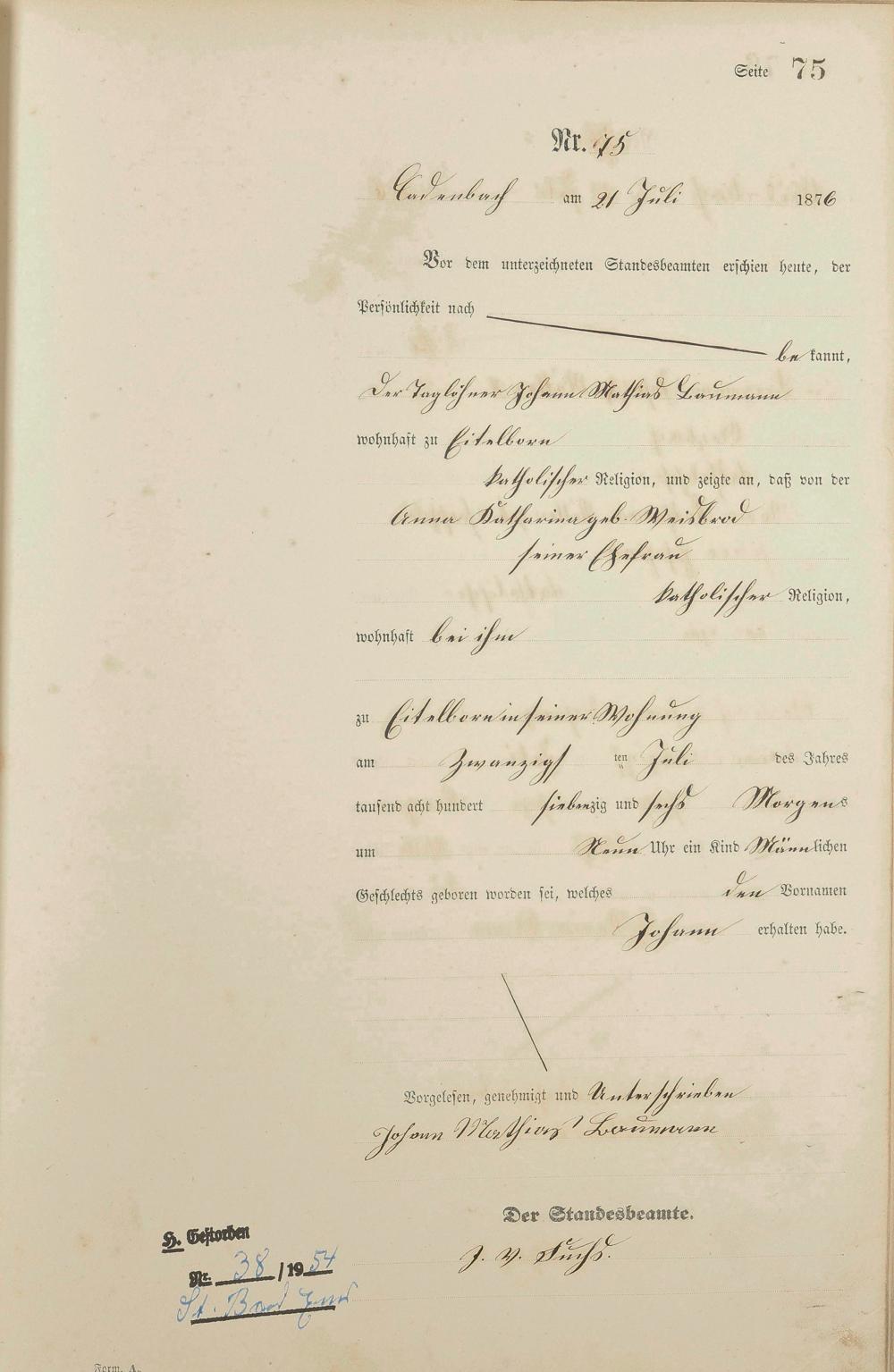 Geburtsregister 1876