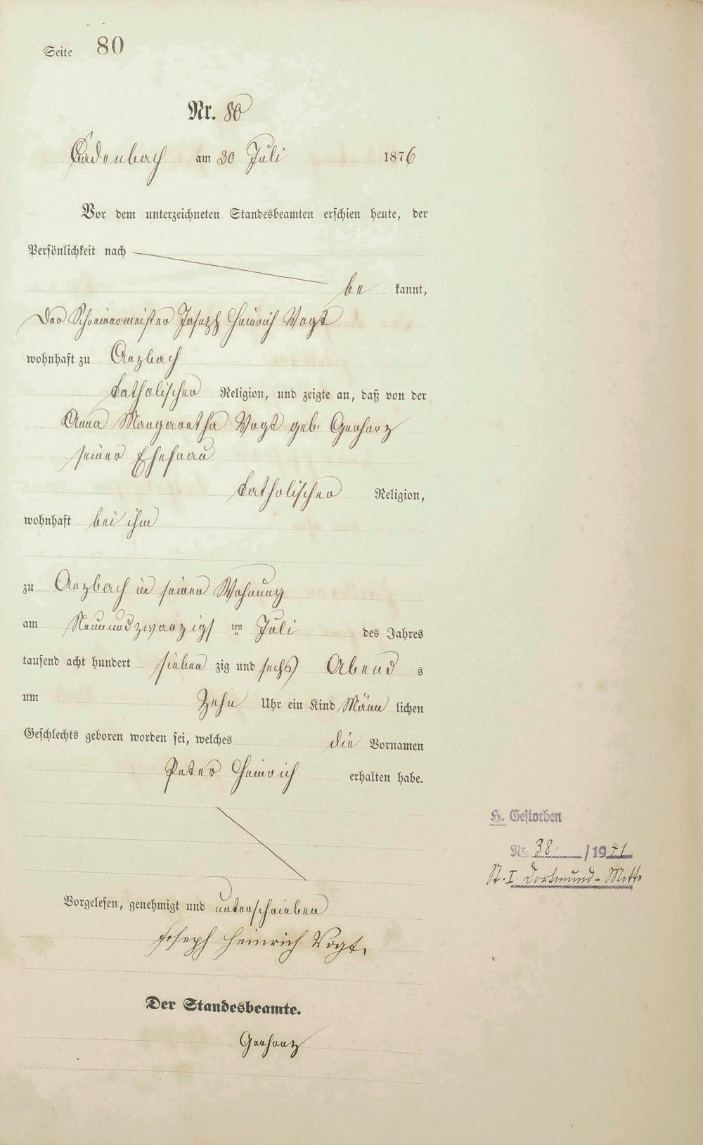 Geburtsregister 1876