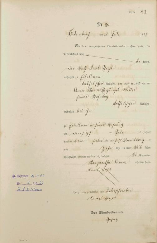 Geburtsregister 1876