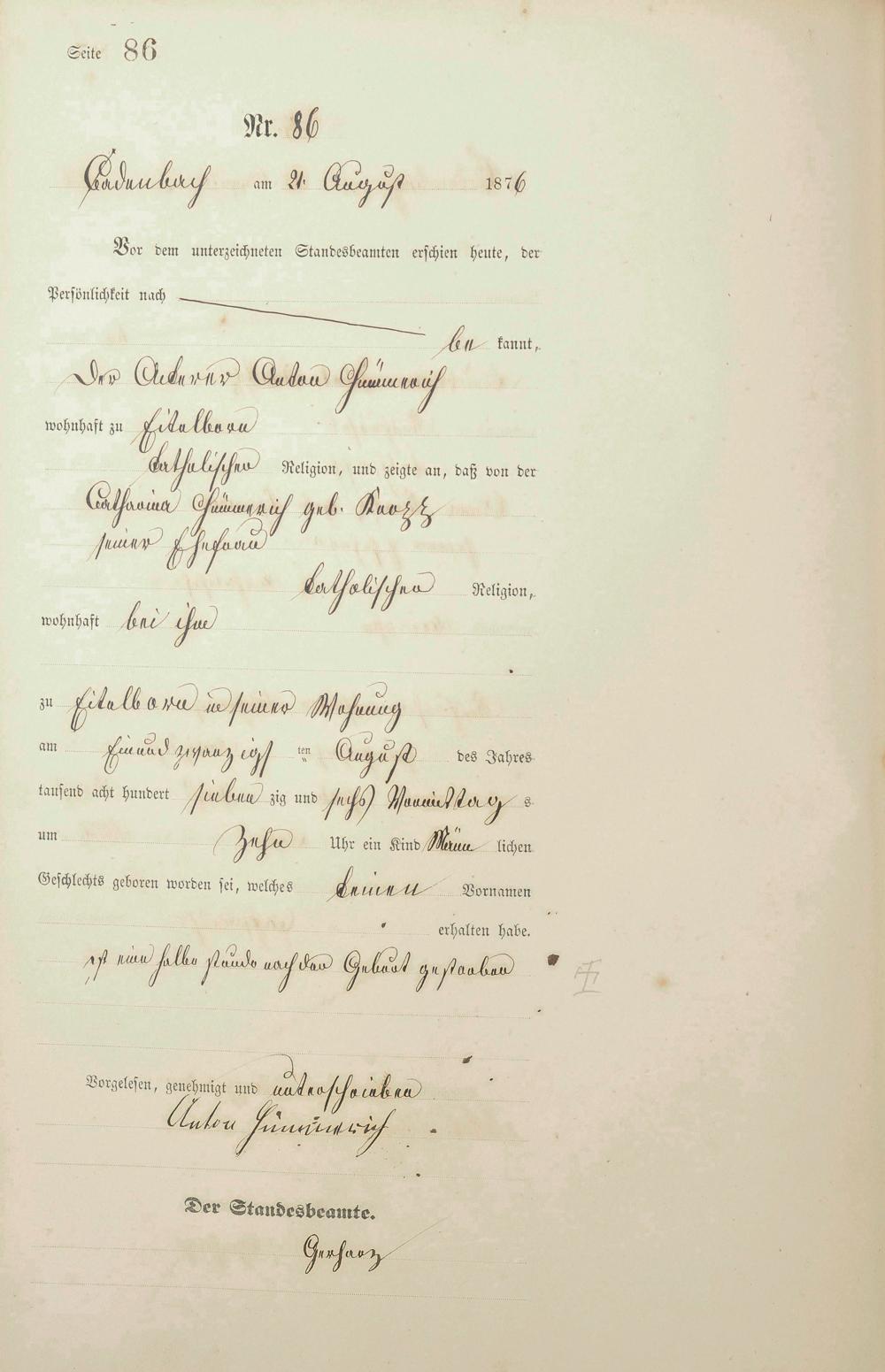 Geburtsregister 1876