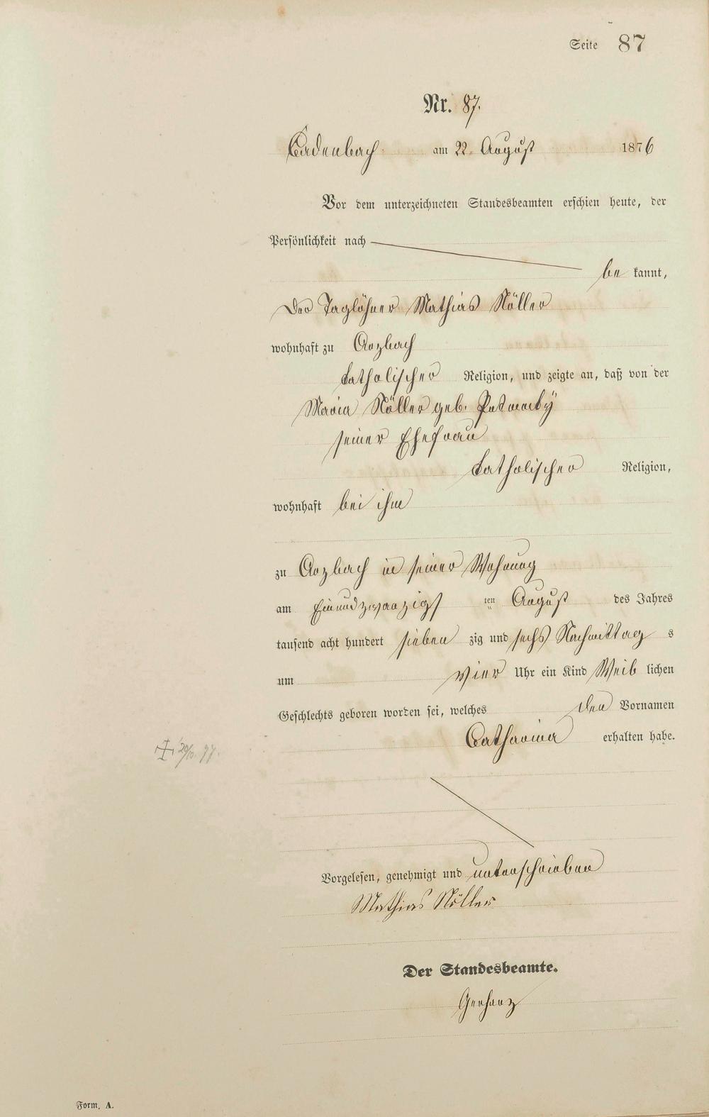 Geburtsregister 1876