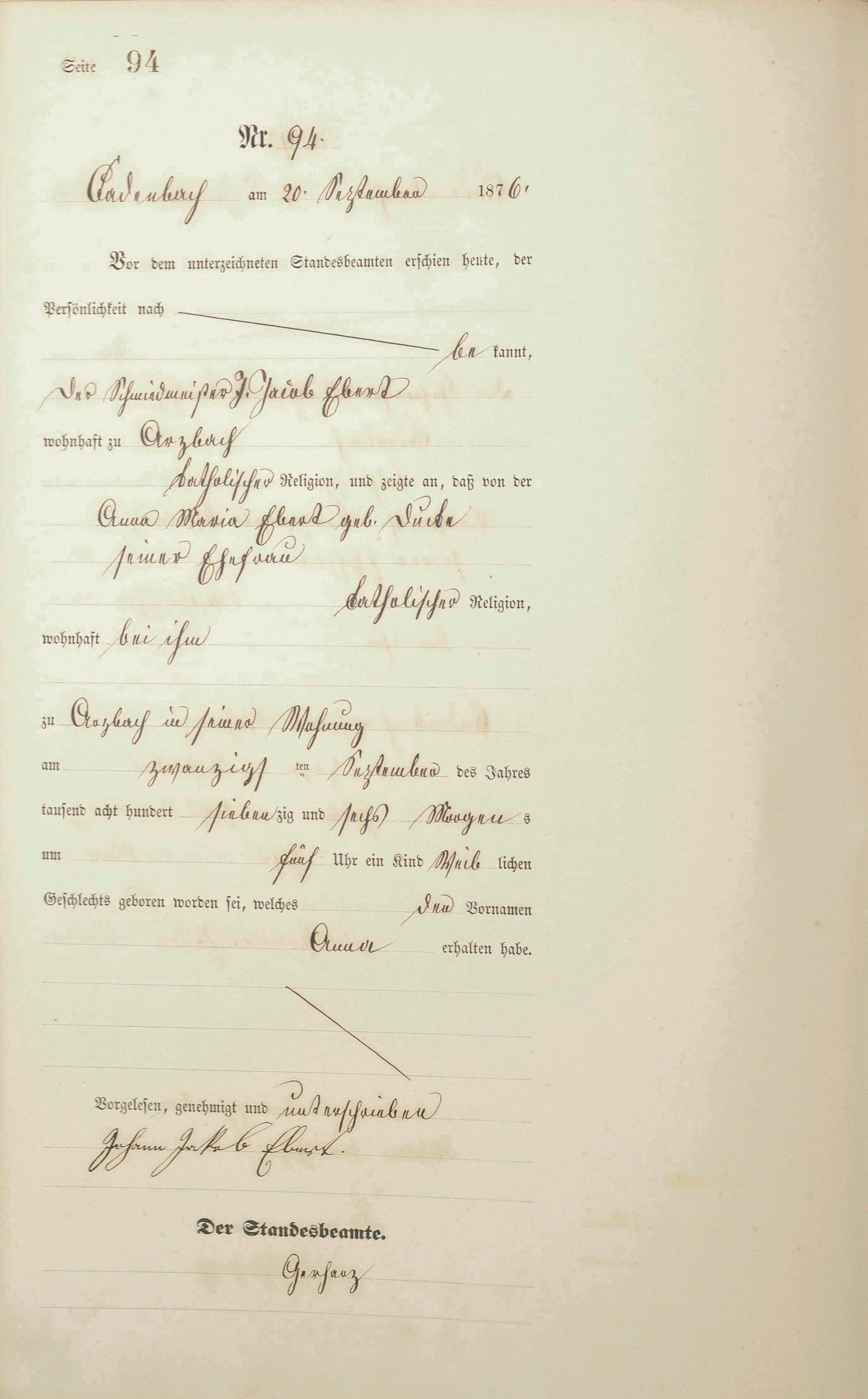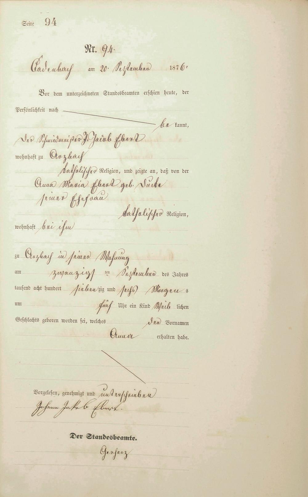 Geburtsregister 1876