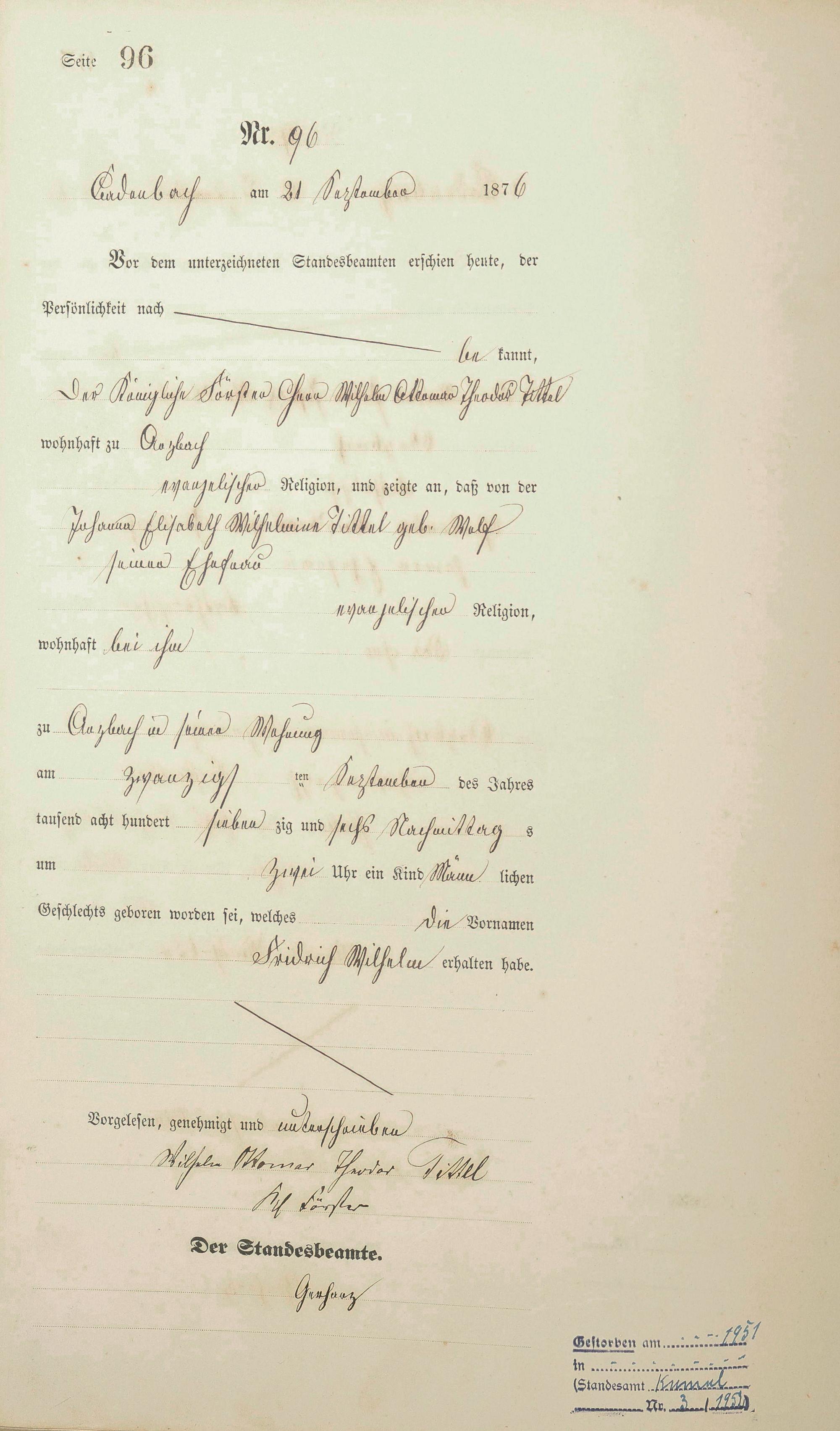 Geburtsregister 1876
