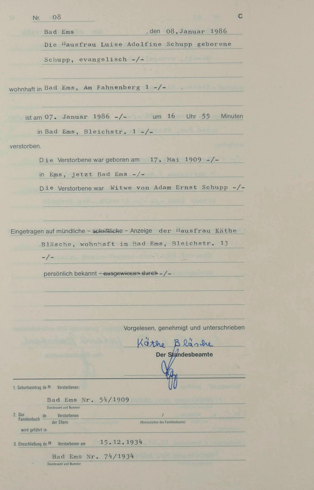 Sterberegister 1986