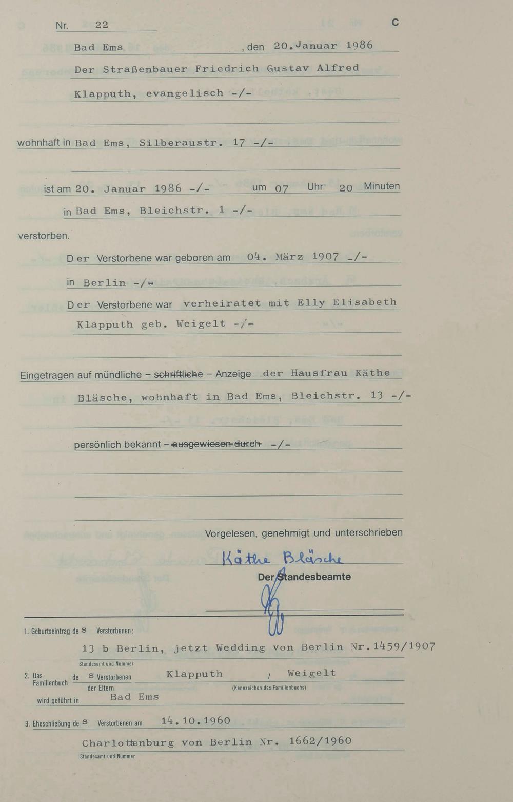 Sterberegister 1986