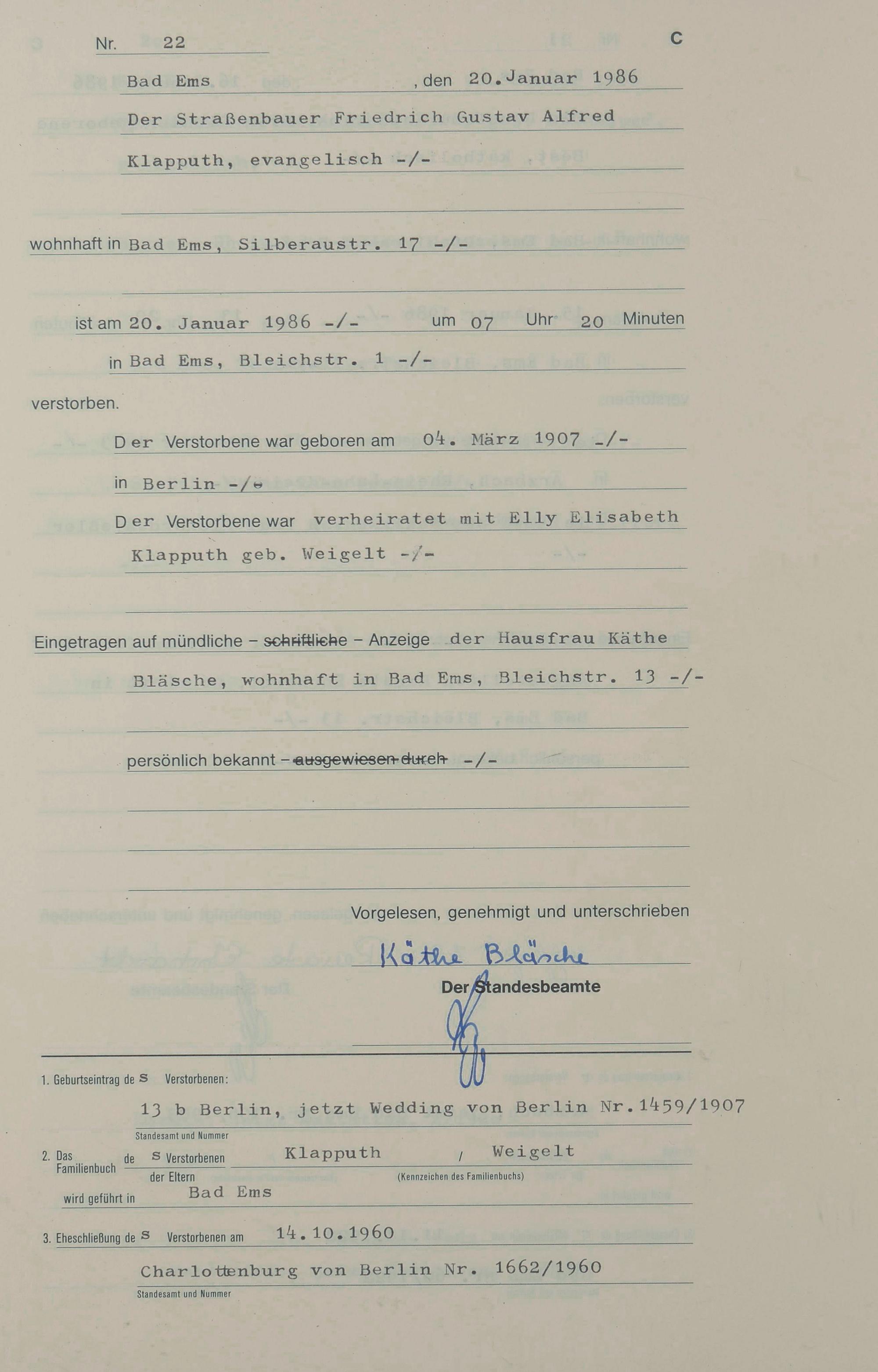 1313: Sterberegister 1986