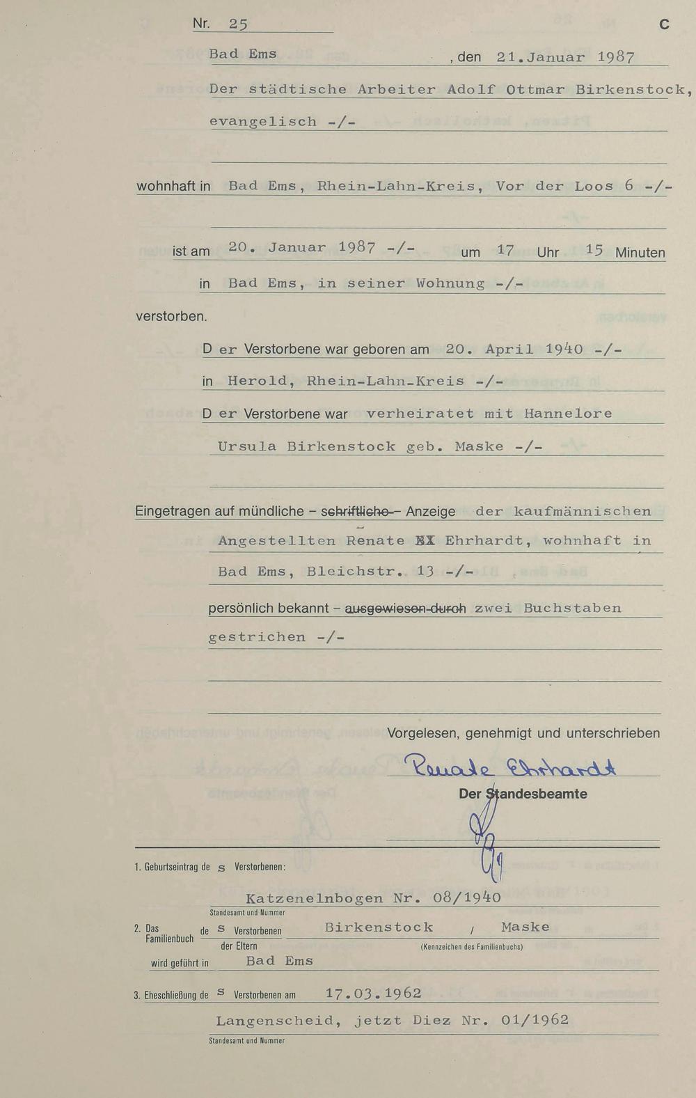 Sterberegister 1987