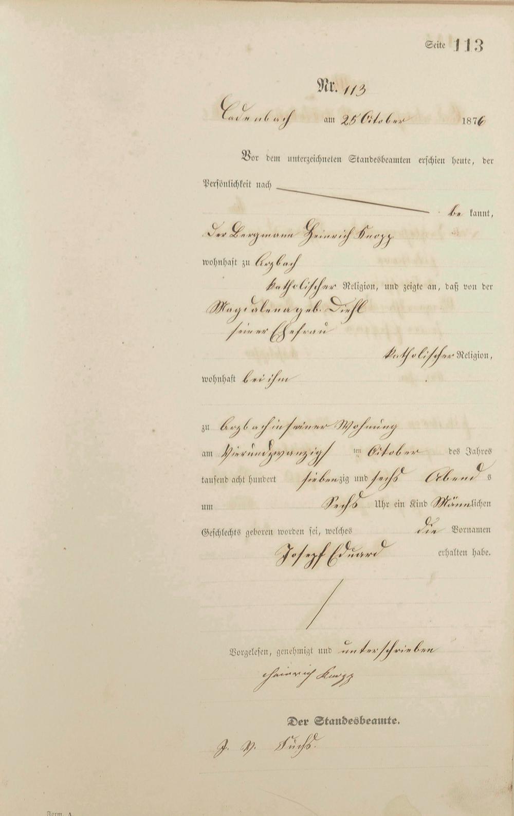 Geburtsregister 1876
