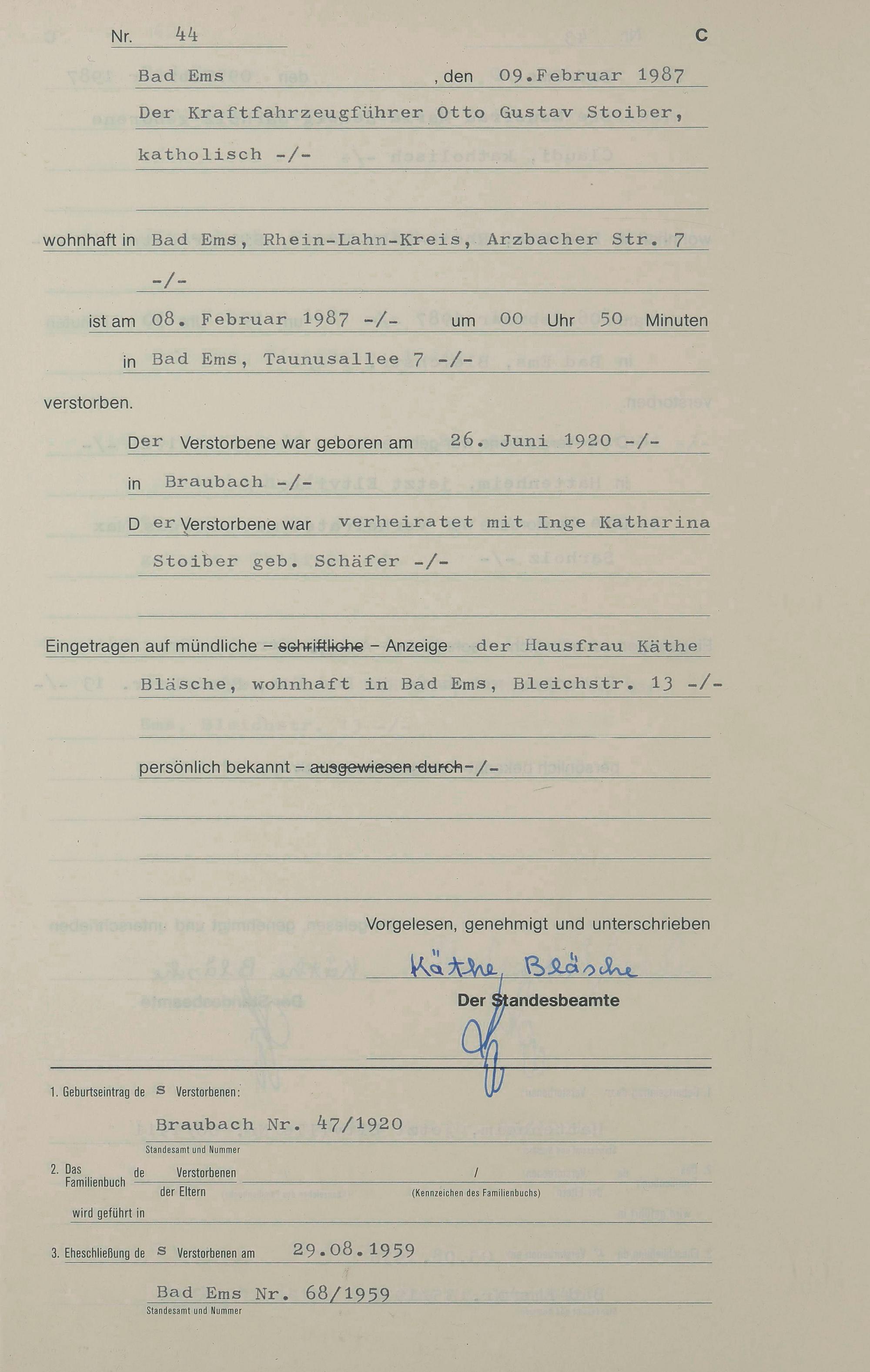 Sterberegister 1987
