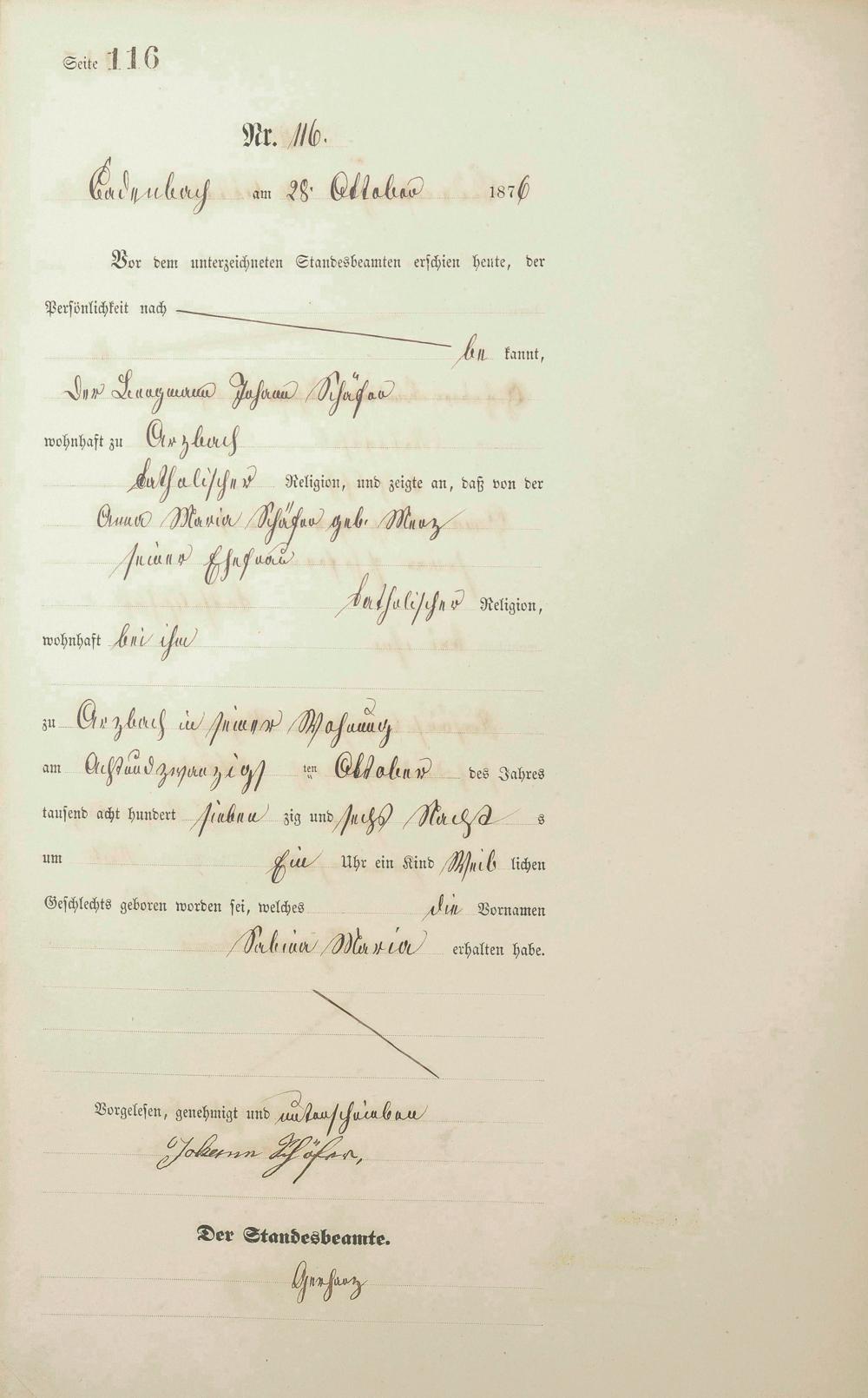 Geburtsregister 1876
