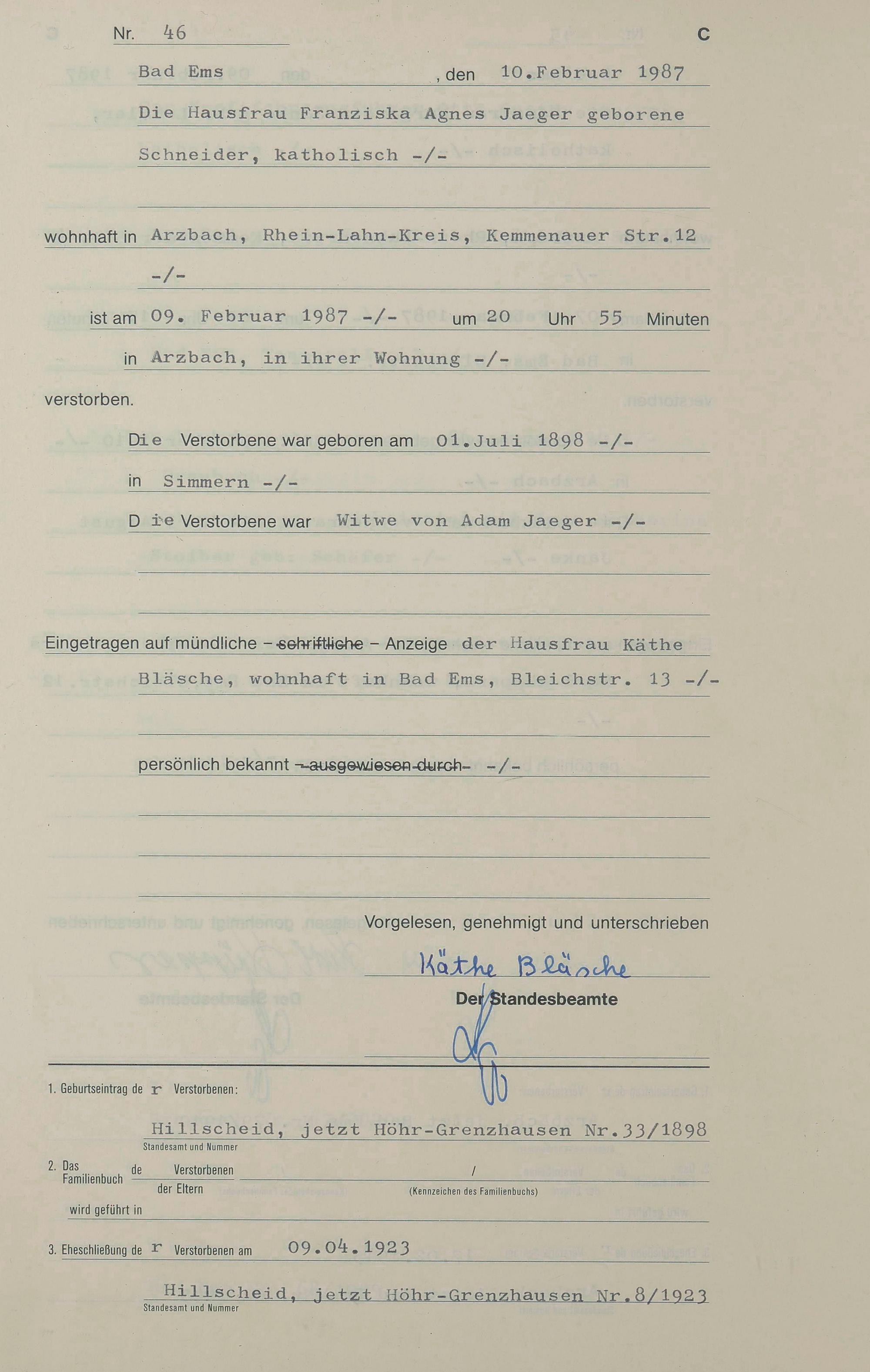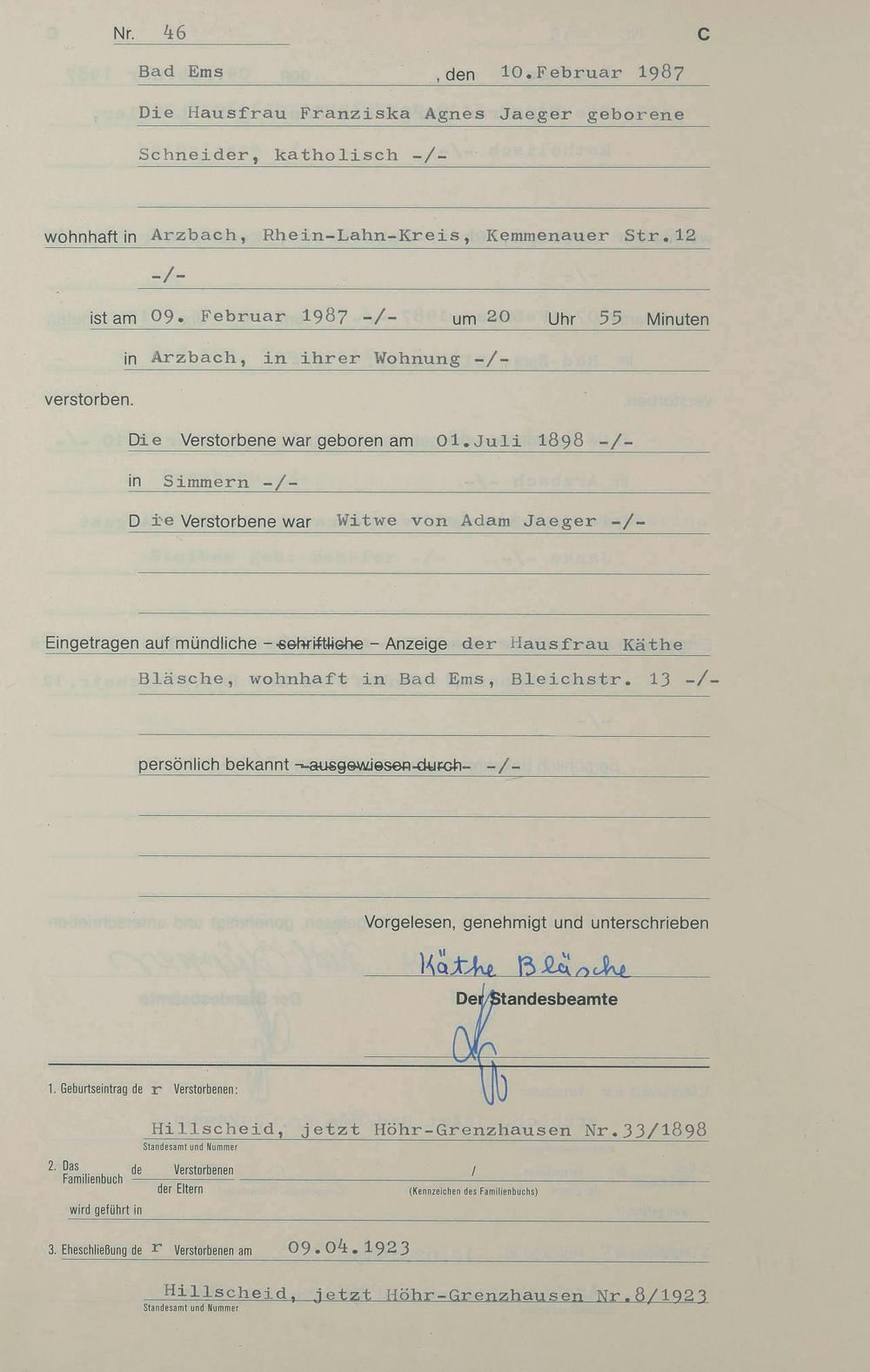1314: Sterberegister 1987