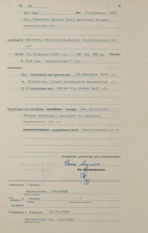 1314: Sterberegister 1987