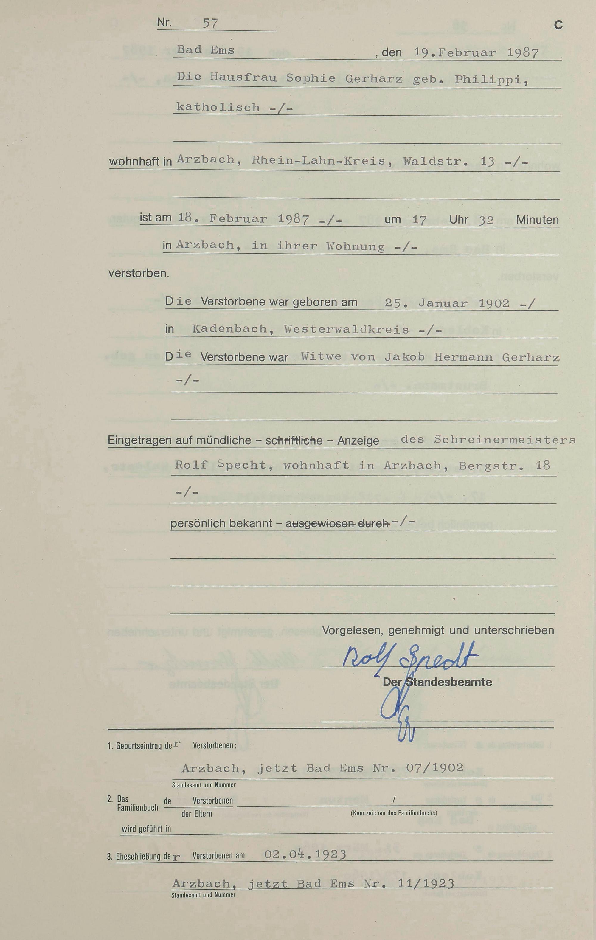 1314: Sterberegister 1987