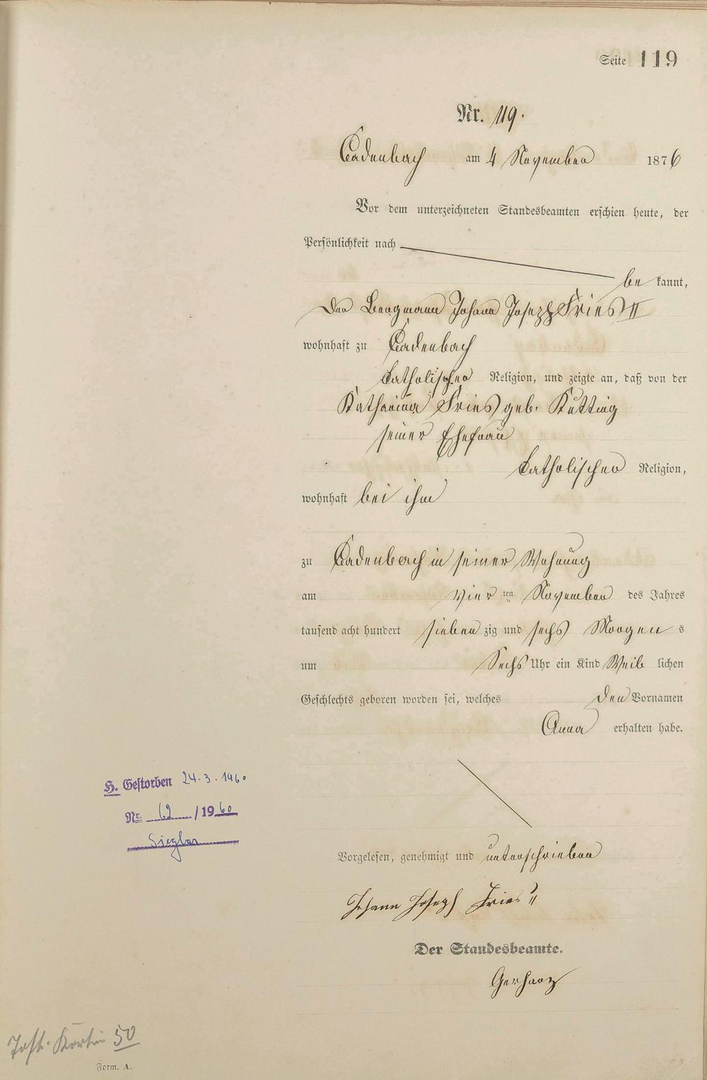 Geburtsregister 1876