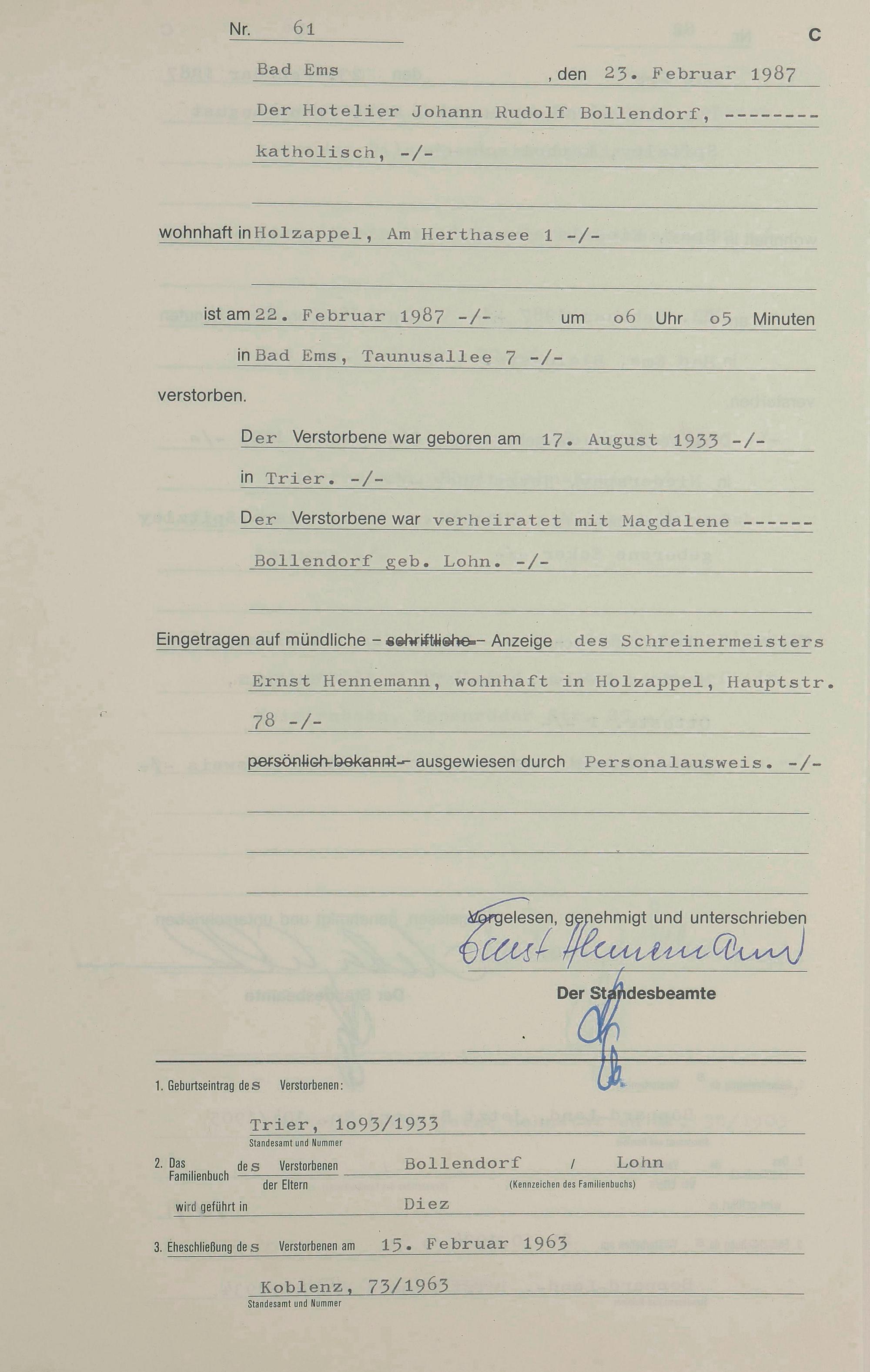 Sterberegister 1987