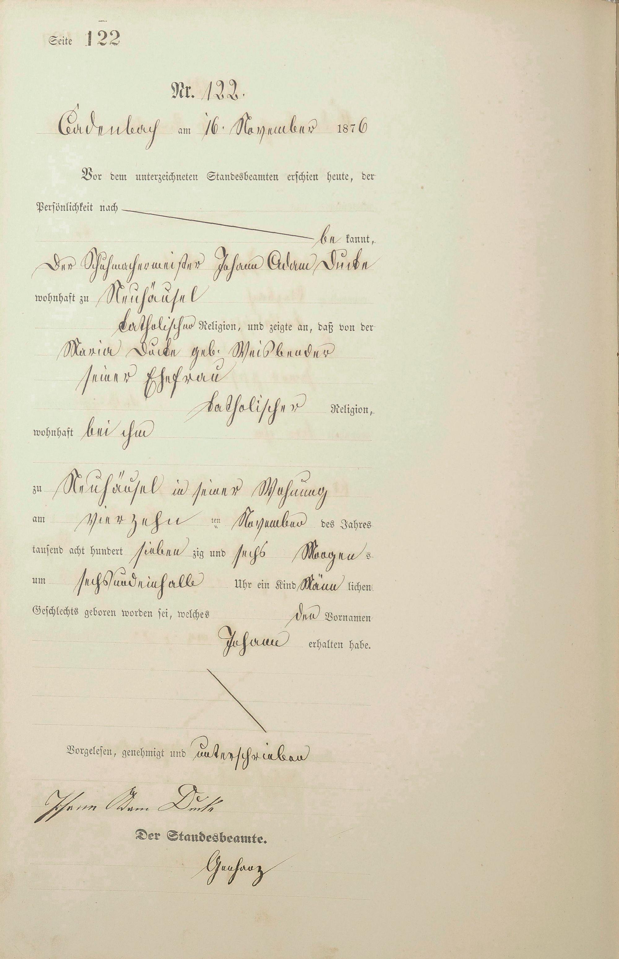 Geburtsregister 1876