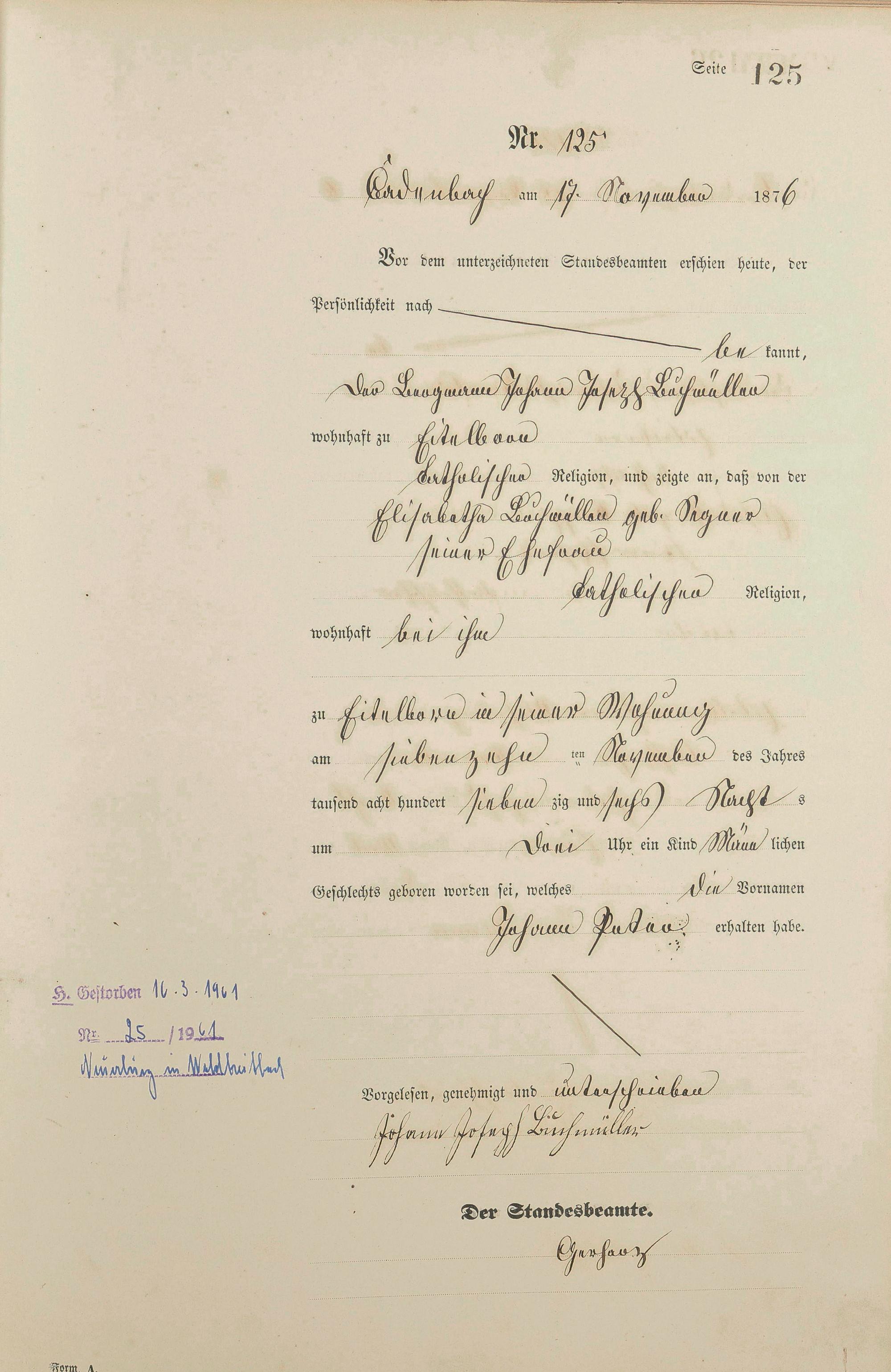 Geburtsregister 1876