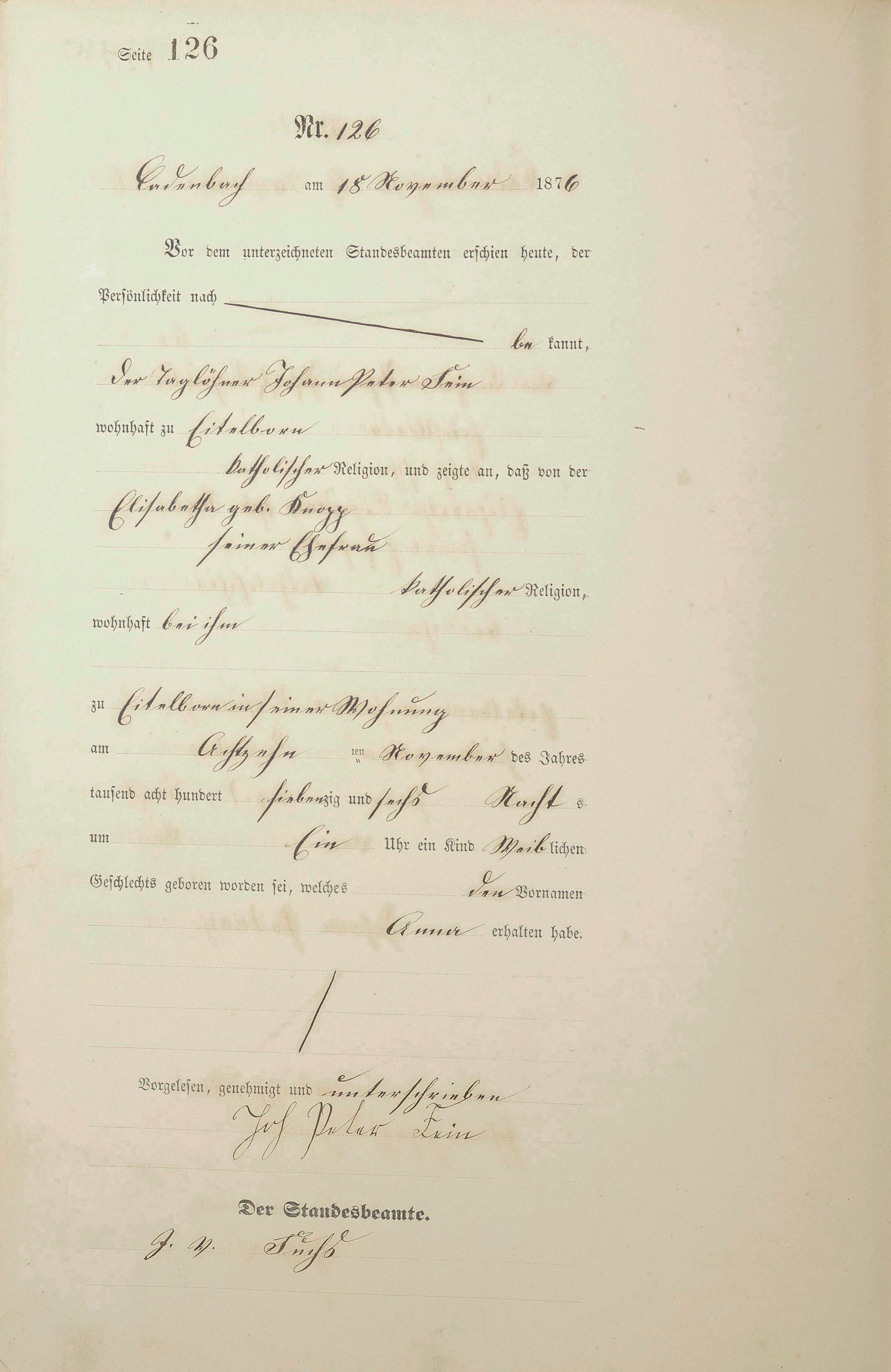 Geburtsregister 1876