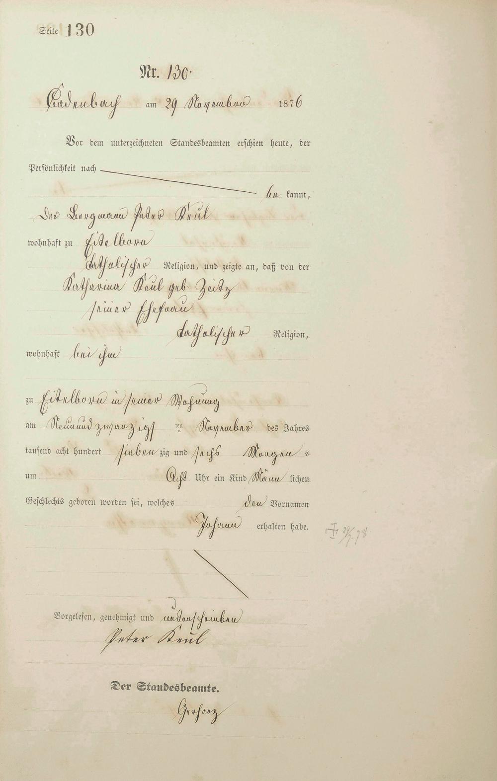 Geburtsregister 1876