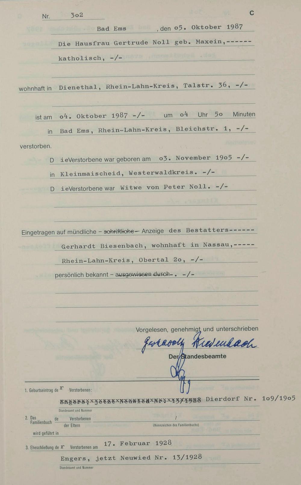 1314: Sterberegister 1987