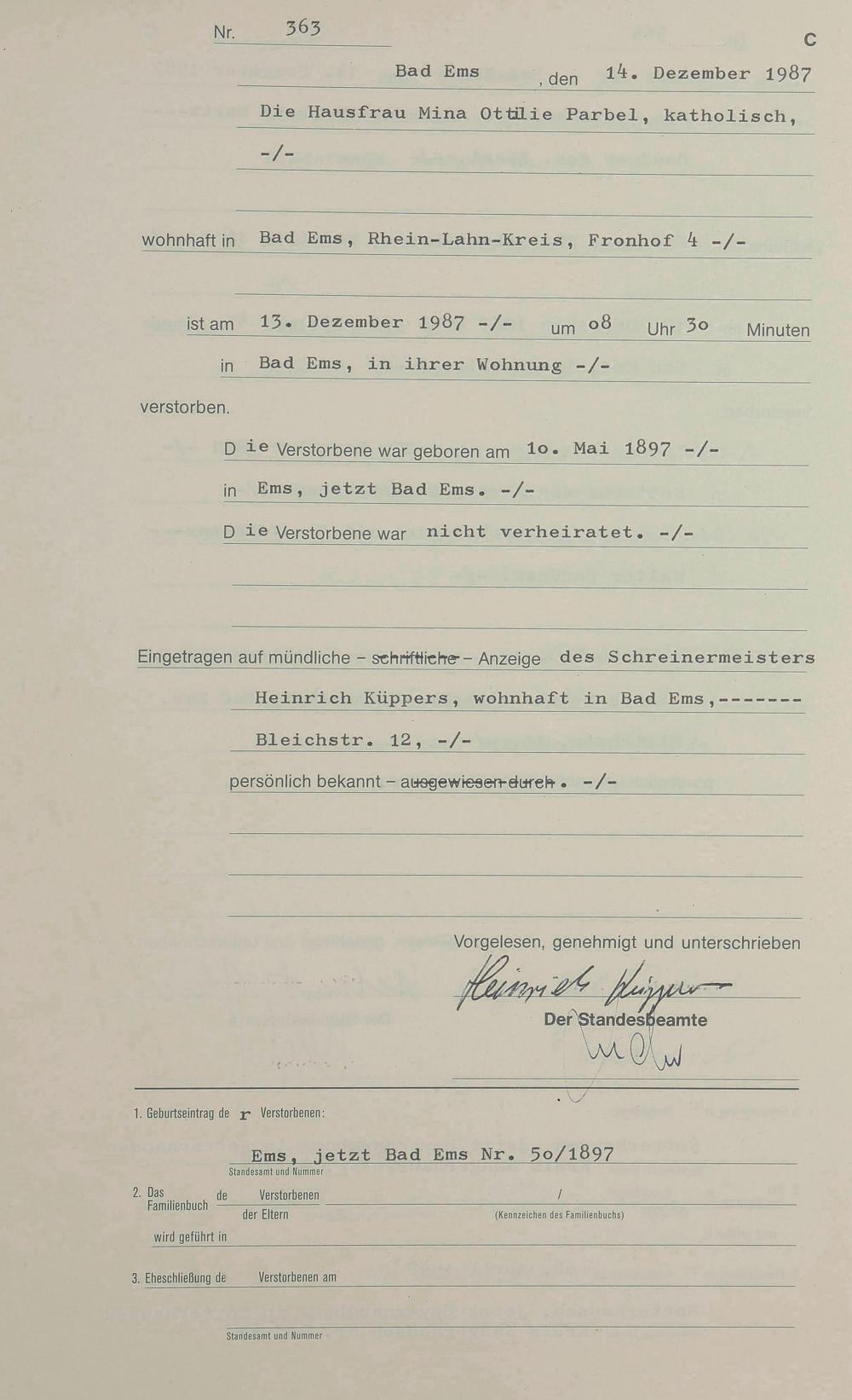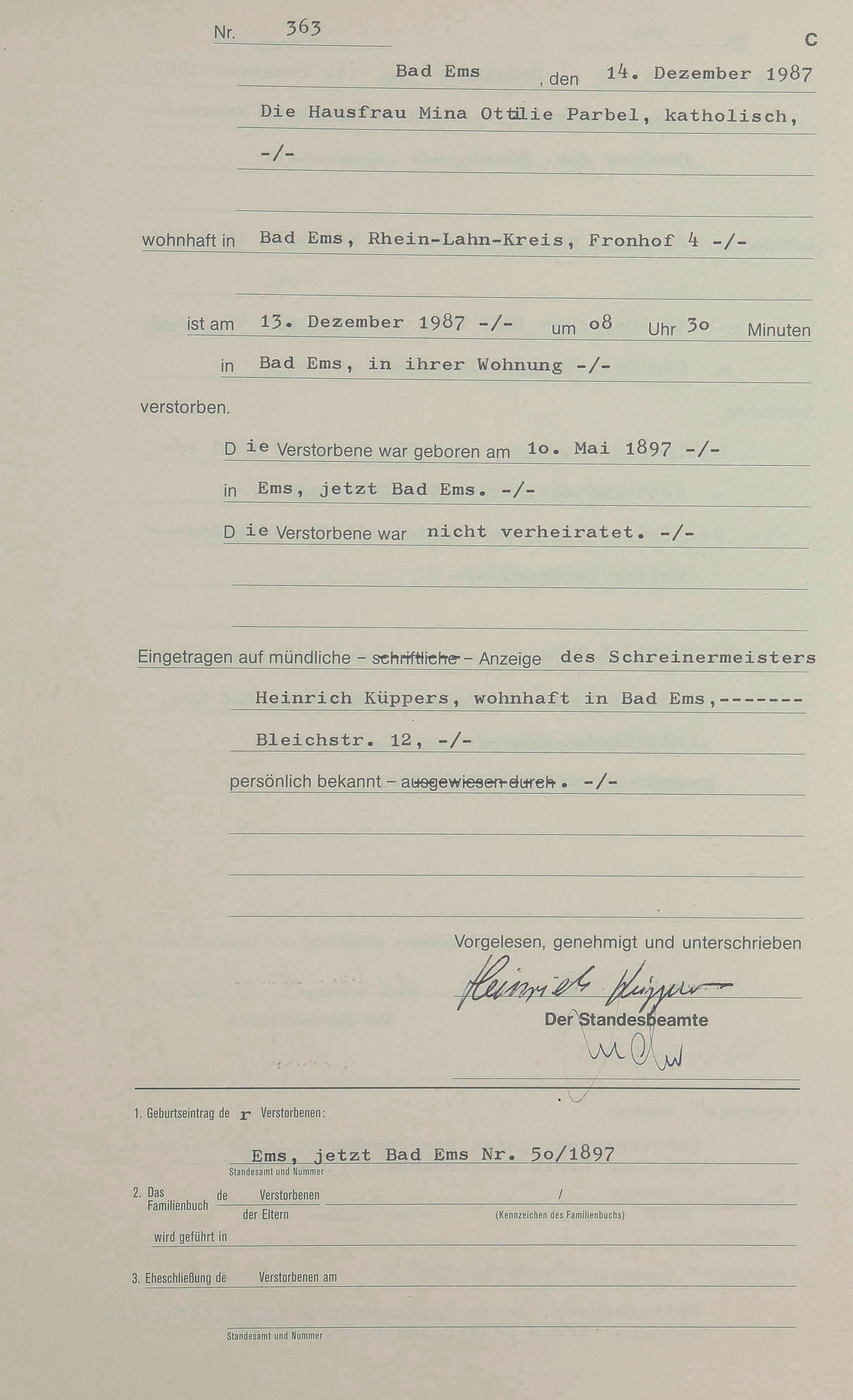 1314: Sterberegister 1987