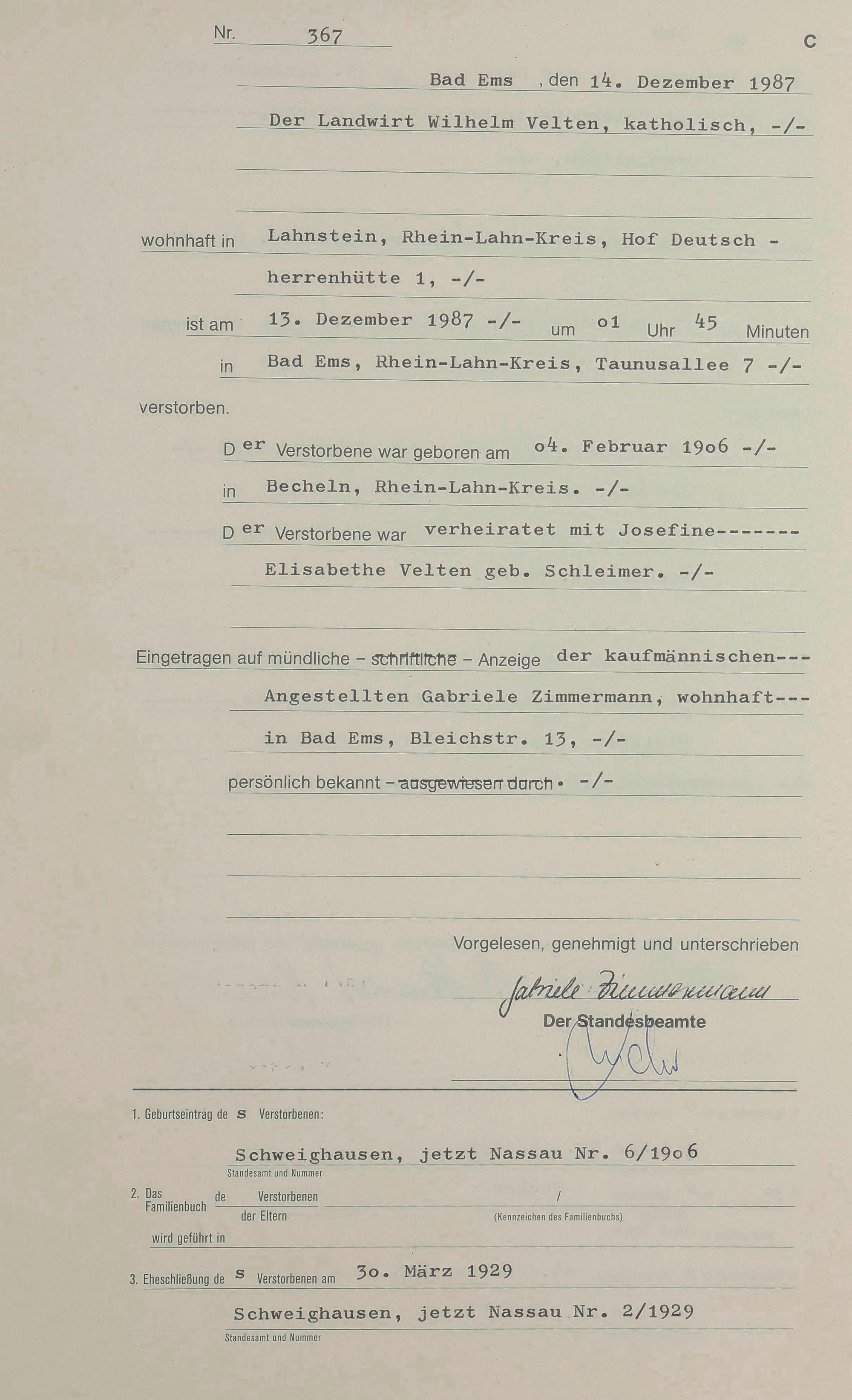 1314: Sterberegister 1987