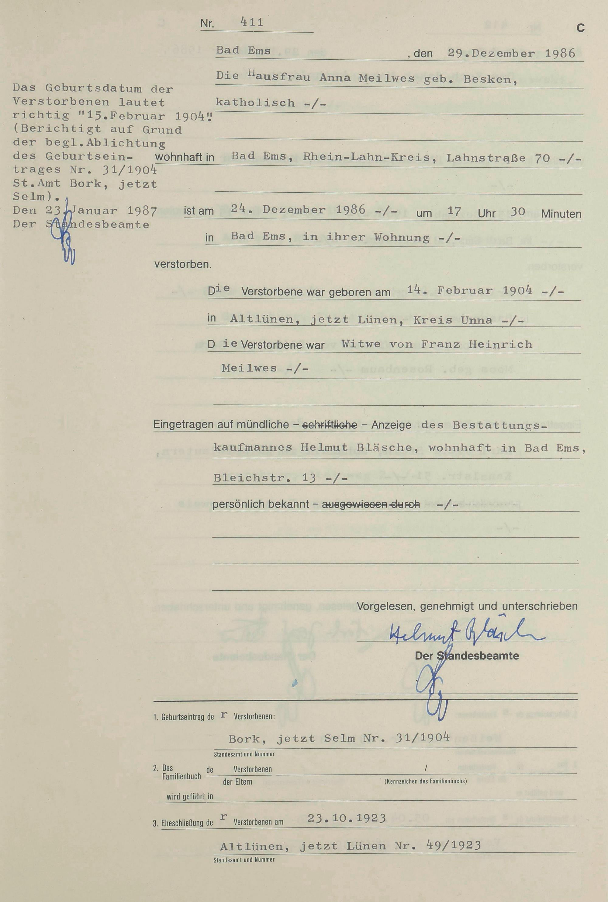 1313: Sterberegister 1986