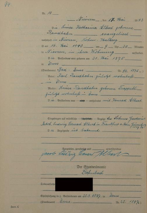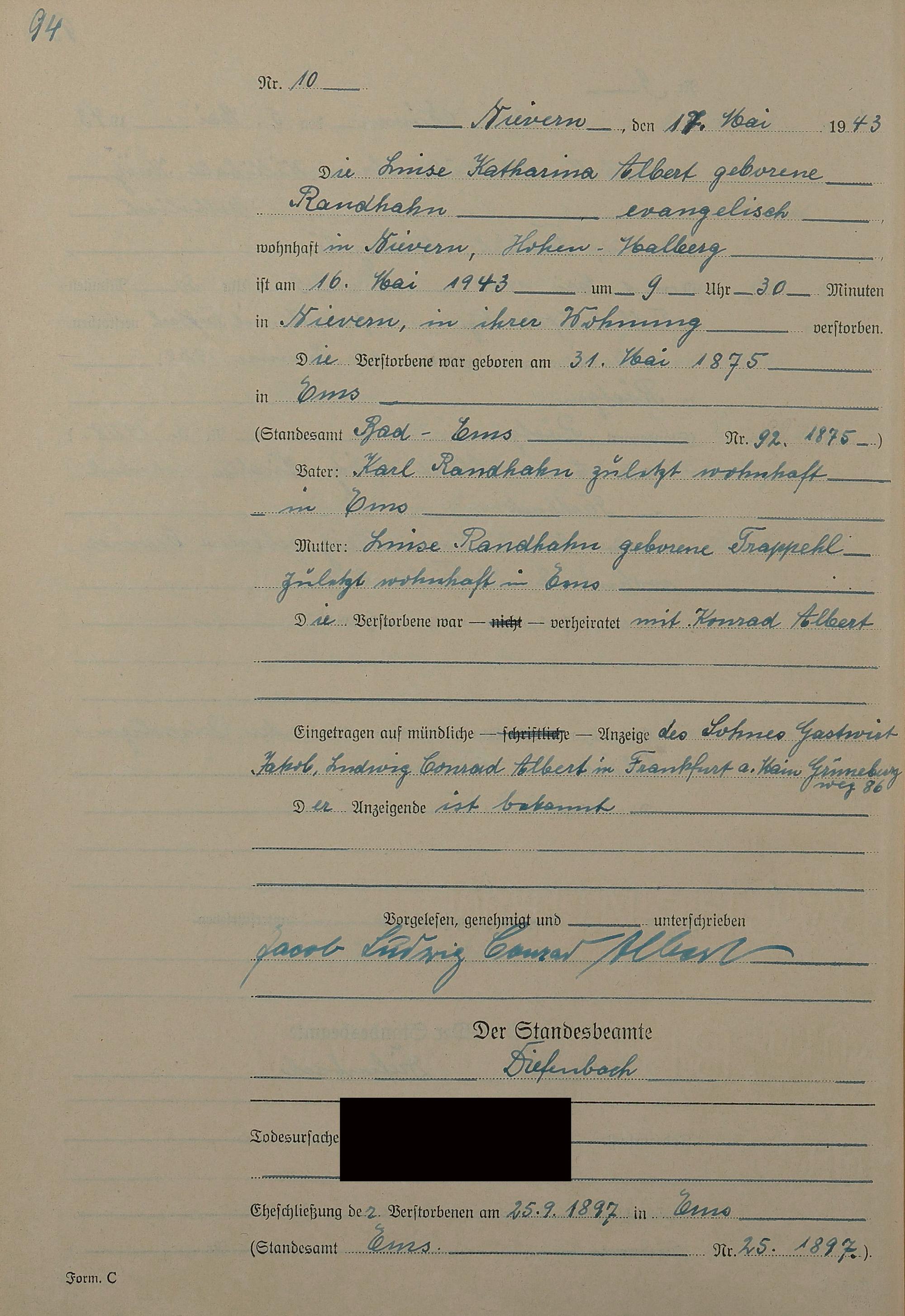 291/17: Sterberegister 1943