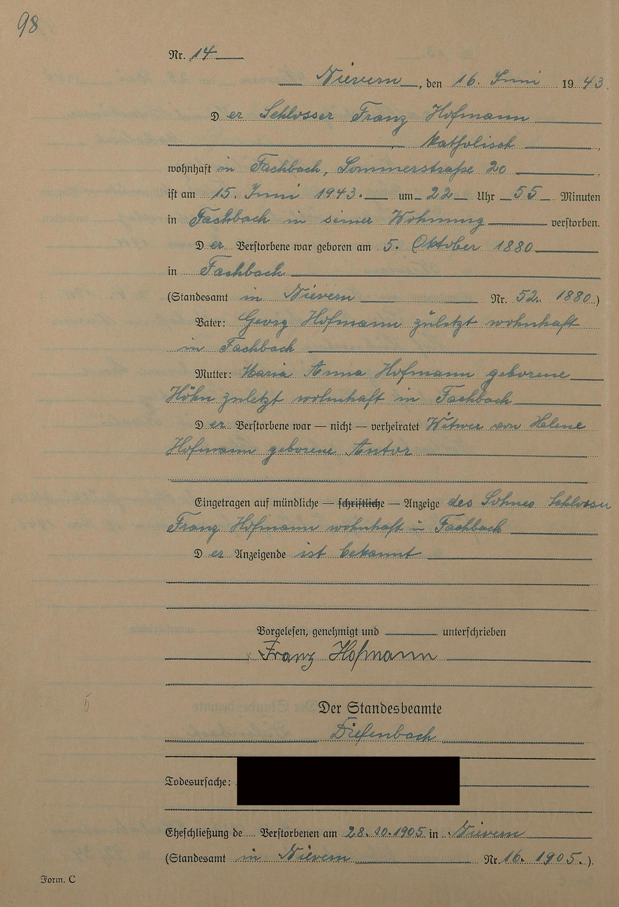 291/17: Sterberegister 1943