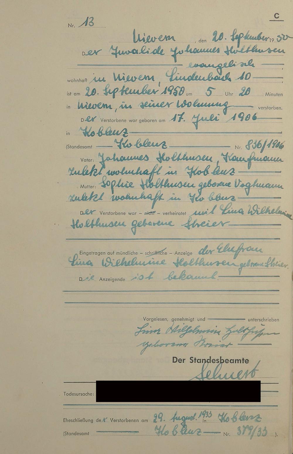 Sterberegister 1950