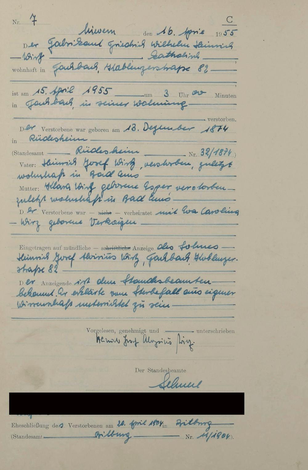 292/07: Sterberegister 1955