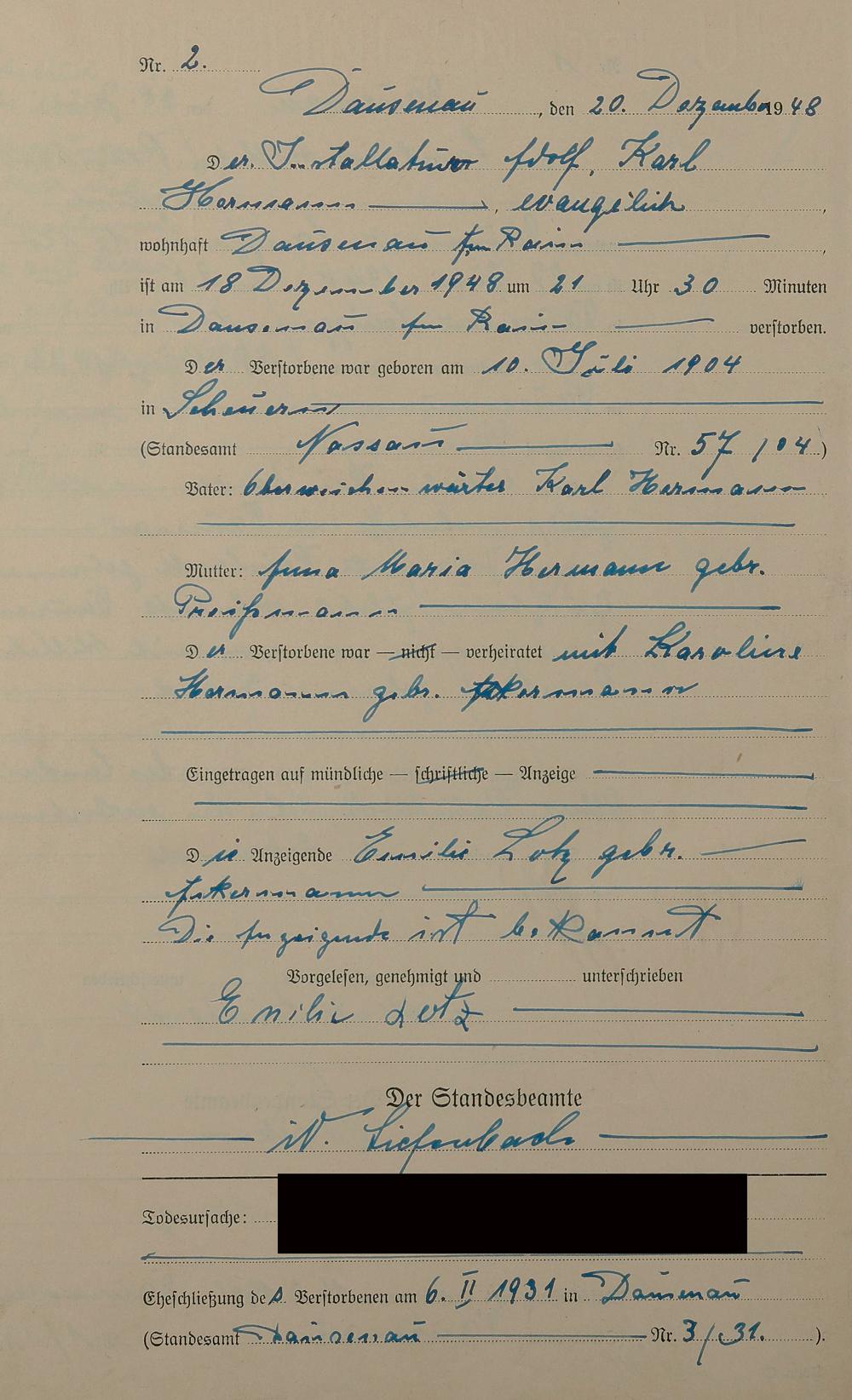 Sterberegister 1948