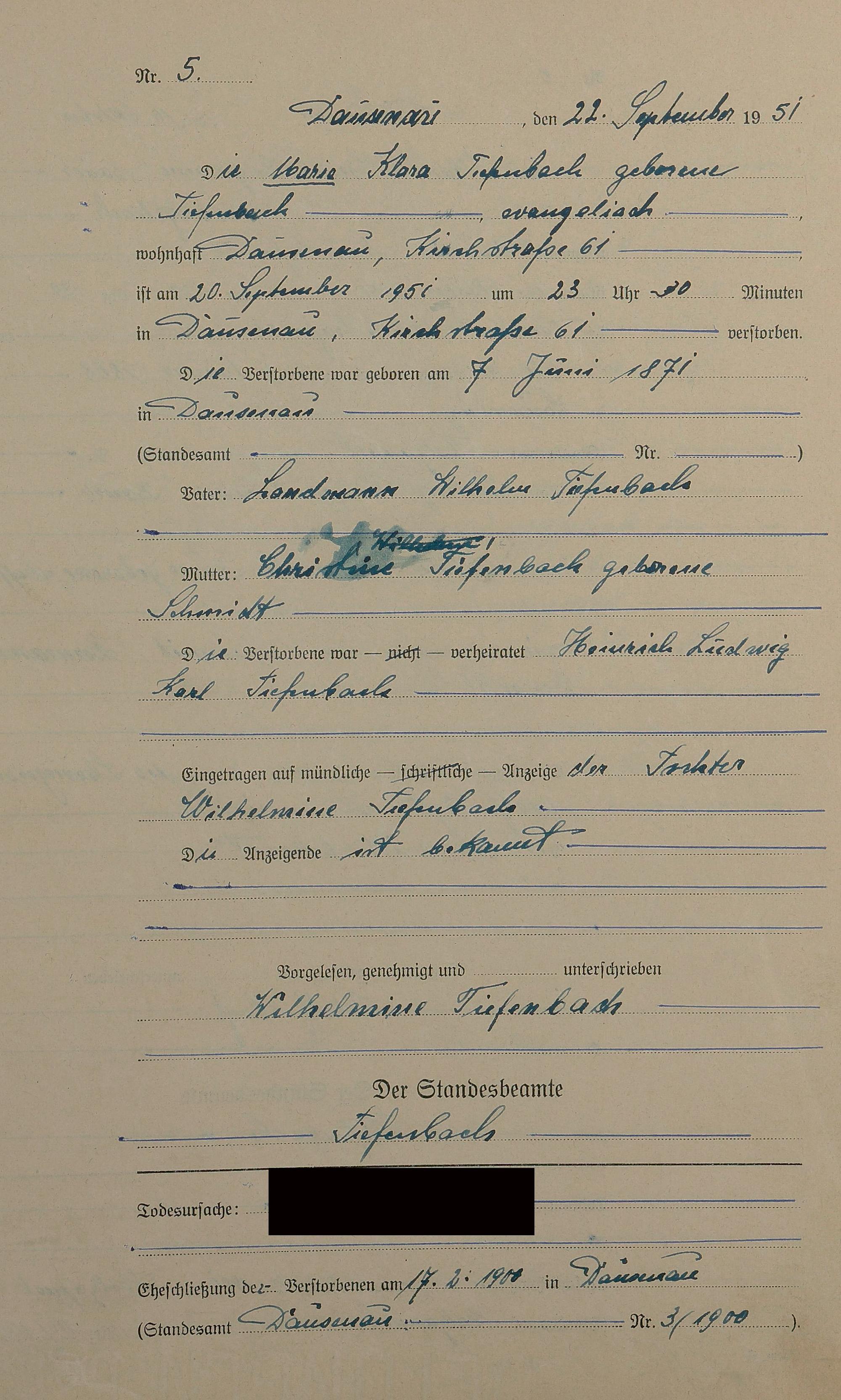 2013/25: Sterberegister 1951