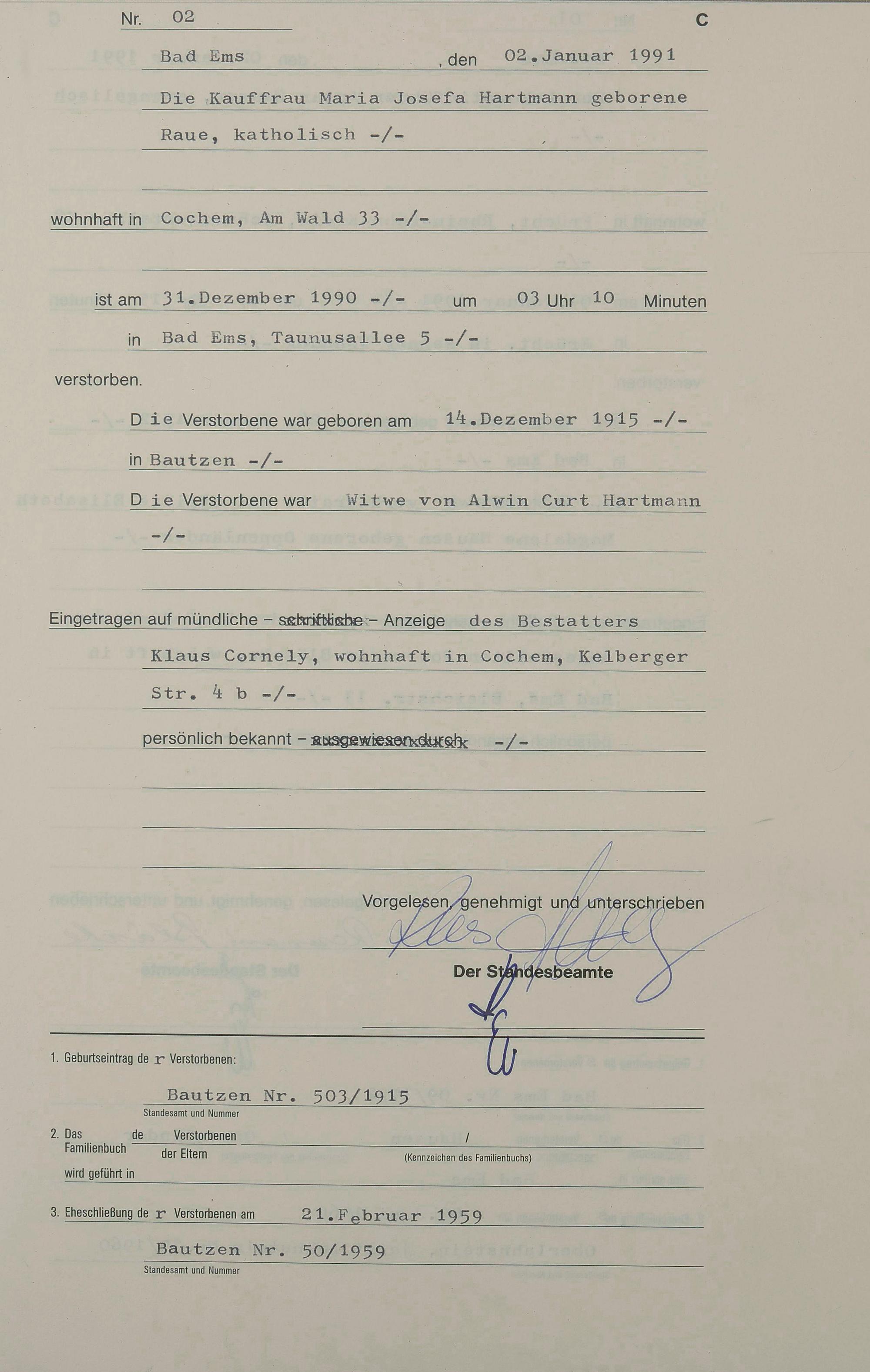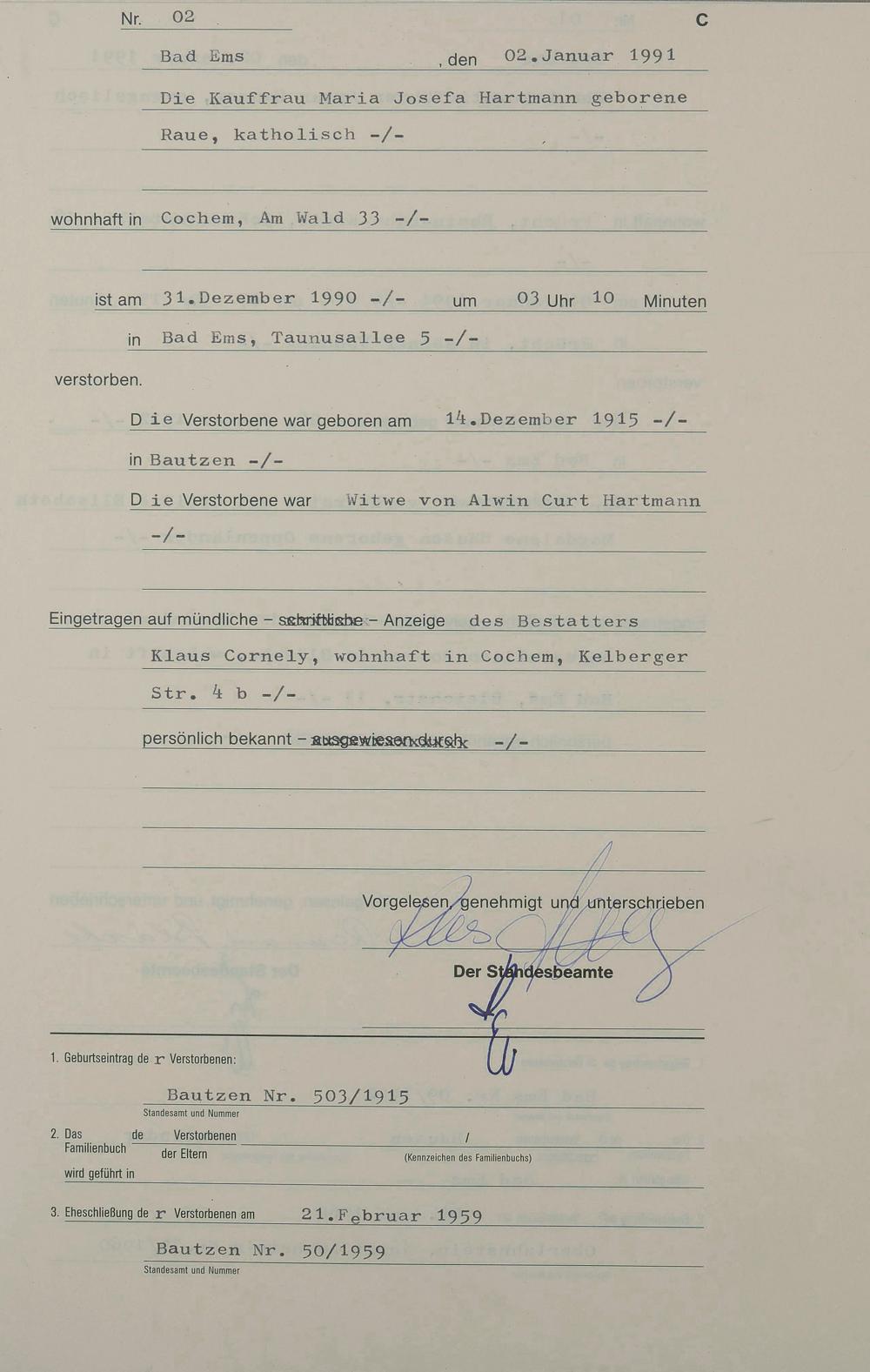 1318: Sterberegister 1991