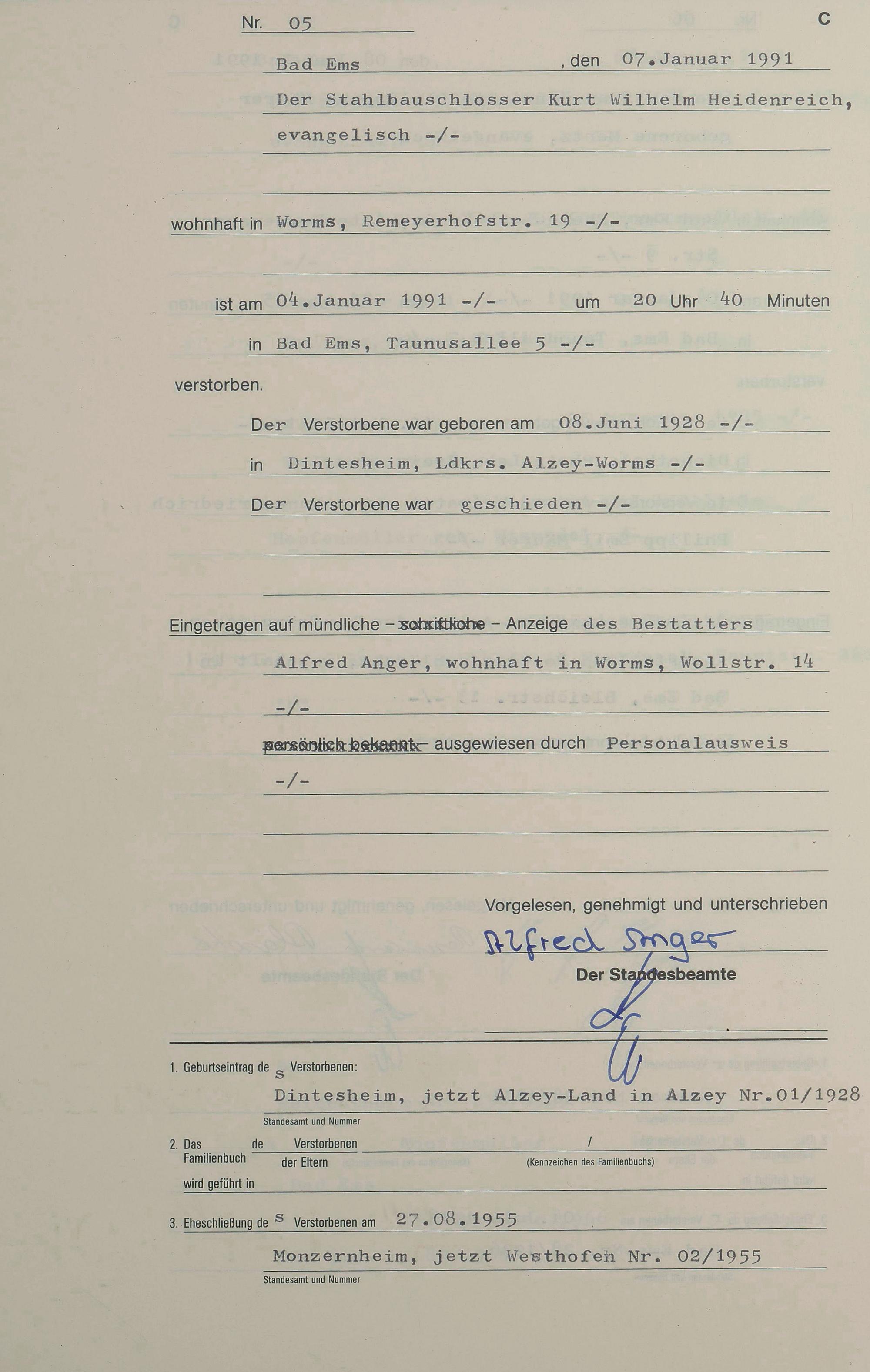 1318: Sterberegister 1991