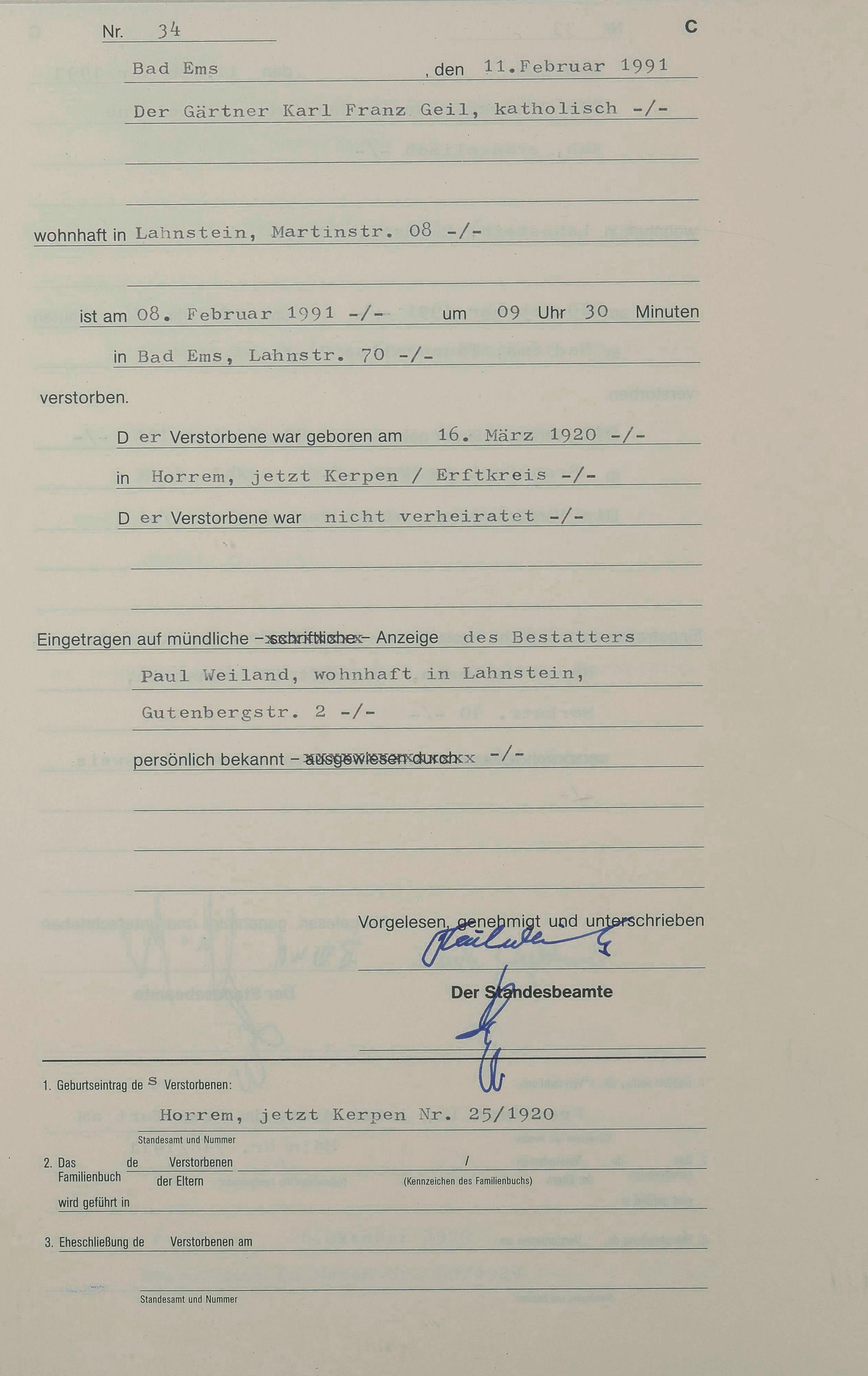 1318: Sterberegister 1991