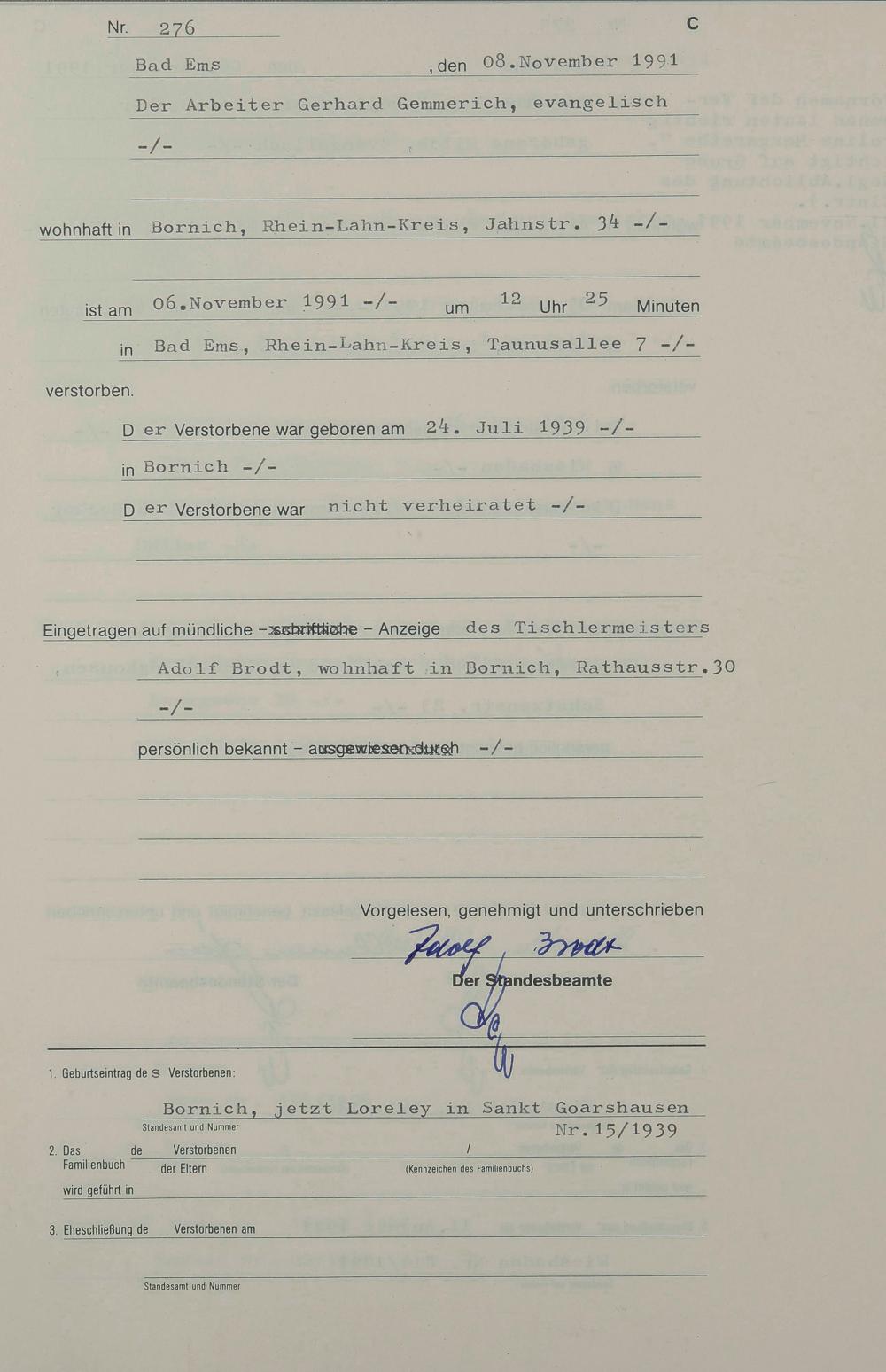 1318: Sterberegister 1991