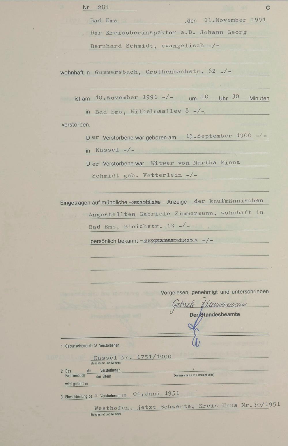 Sterberegister 1991