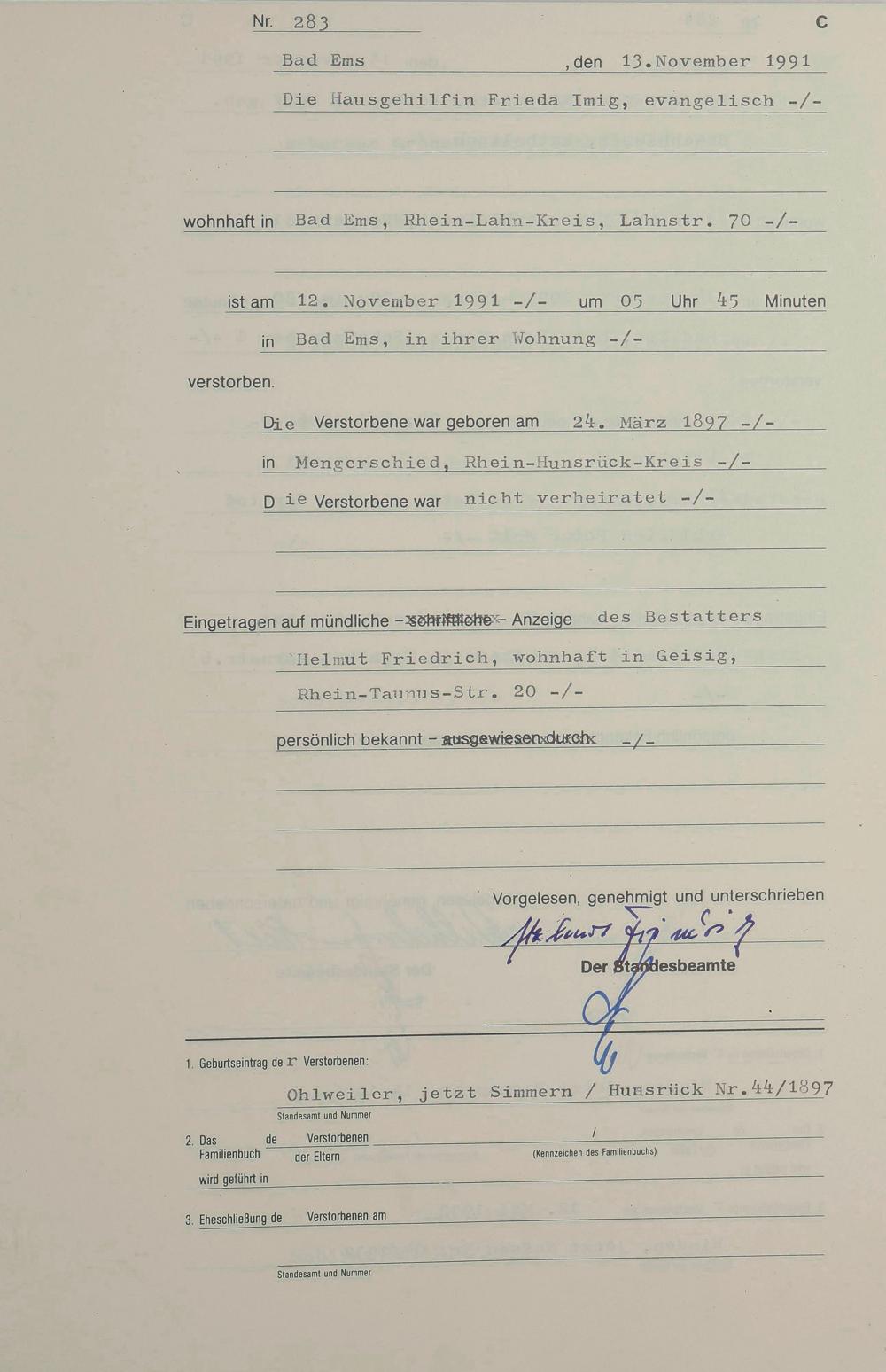 1318: Sterberegister 1991